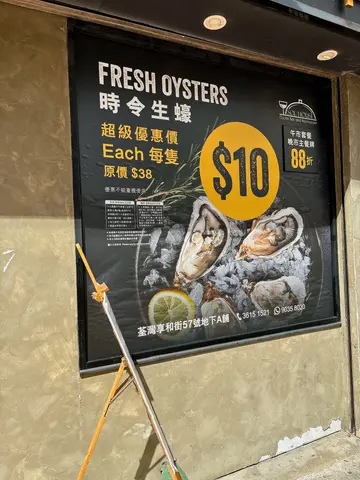 同班姊妹喺荃灣呢間蠔吧搞婚前派對,餐廳燈光偏暗但帶啲工業風,金屬吊燈同磚牆幾有型格。枱與枱之間夠闊落,傾偈唔怕隔籬聽到,背景播住輕快爵士樂,啱晒一班女仔邊食邊笑鬧。最正係半開放式蠔吧枱,睇住師傅即開生蠔,傳來陣陣海水味🌊~🦪時令生蠔(8/10) 法國Gillardeau蠔身飽滿,先嚐到淡淡青瓜香,尾韻帶榛子堅果味,海水鹹度適中。蠔肉爽脆得嚟有少少creamy,配檸檬汁比餐廳自製醬汁更夾。🍴澳洲藍青口配蒜蓉包(7.5/10) 雲呢拿忌廉汁好大膽!初頭驚甜但原來似香草奶香,青口嫩滑吸滿汁。法包烘得脆身,蒜蓉牛油味可以再重手啲,蘸汁食就啱啱好。🥩烤美國牛腰肉西冷扒(8.5/10) 叫咗medium rare切開粉嫩冇血水,炭燒焦香突出。肉質有咬口但唔韌,旁邊嘅烤蒜頭超甜,可惜海鹽得普通粗鹽,換成煙燻鹽會更正。🍣慢煮三文魚意大利飯(7/10) 魚皮煎得脆,魚肉保持到塔斯曼尼亞嘅油脂感。飯粒偏硬身正宗做法,但昆布汁略嫌太鹹,蟹子嘅卜脆口感救返唔少分。🍟烤薯仔配煙肉(6.5/10) 薯角外皮夠脆,灑滿煙肉碎同香草,不過調味偏淡,自己加咗枱面嘅辣茄汁先夠味。作為side dish合格有餘。🍸Apple Flower / Sassy Lemon(7.8/10) 前者用蘋果汁溝氈酒,面頭真係有朵食用花;後者係檸檬梳打加薄荷葉,酸爽解膩,兩杯都夠IGable📸成晚食落最正係生蠔同牛扒,份量夠大堆頭啱晒分享。雖然部分菜式調味可以再細緻啲,但勝在環境夠自在,侍應又唔會催收碟,我哋傾到打烊先走。姊妹們仲拎住蠔殼扮求婚,搞到全場望住笑😂 呢種輕鬆氣氛,先係最正嘅餸菜!…查看更多