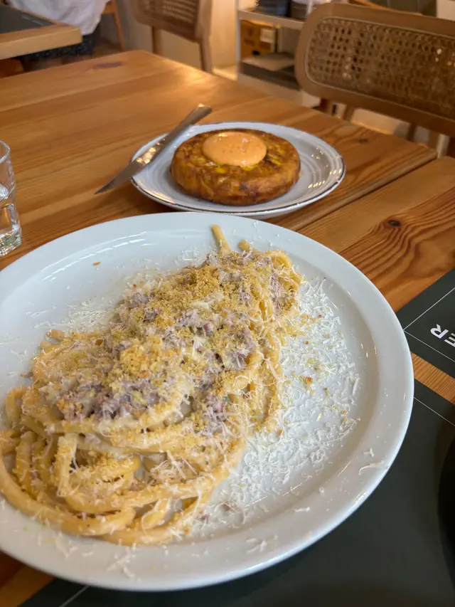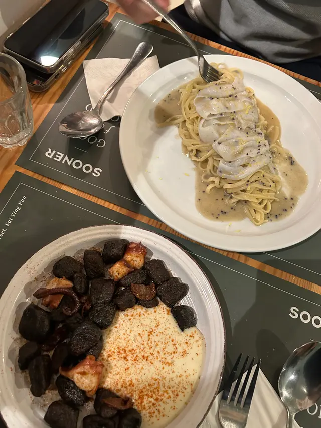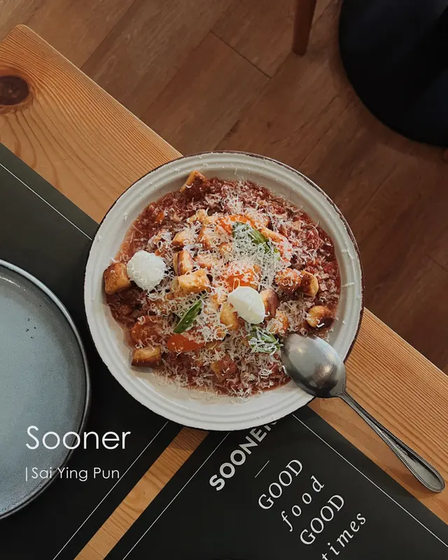 🧭Sooner • 西環最近人氣小店 當然要襯lunch hour小人啲仲可以online booking, 唔洗等位就入得人氣菜式:🍝蕃茄蘑菇醬手工脆薯圈 ⭐️⭐️⭐️⭐️⭐️炸過既薯圈 口感好唔同醬汁好濃郁,蕃茄可以減小油膩感 不錯🍳四重芝士西班牙蛋餅⭐️⭐️⭐️⭐️⭐️好重芝士味 仲有啲流心添好有飽足感🥖意式拖鞋包配欖欖油⭐️⭐️⭐️⭐️睇落好簡單,但包軟硬適中熱辣辣配埋欖欖油 好夾全程仲可以望住廚師整意粉新鮮熱辣出爐 就即刻係你枱面🥰值得下次再訪,試其他意粉🍝#hongkong #food #cafe #foodie #foodstagram #港島 #西營盤 #西營盤美食 #意粉 #sooner…查看更多