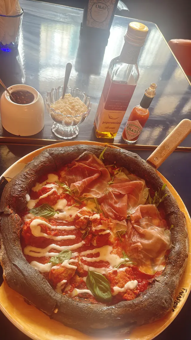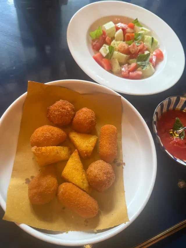 同細佬兩個人去咗奧斯卡影后餐廳朝聖食個lunch,餐廳係舊時大押改建,餐廳正正就喺大押裡面,保留了原有大押原有特色和外型,入面佈置充滿着奧斯卡影后意大利女星Sophia Loren的影子,外貌和內在環境都有好大對比。餐廳以意大利風格和佈置,一入門口係長形吧枱位置,到處都見到Sophia Loren靚樣,連酒杯都印有Sophia Loren個名!最深刻印象係Sophia Loren的珠子垂廉,好優雅同時好有氣派!侍應有講廣東話、英文和國語,唔使驚唔識講英文。麵包籃 - 麵包好鬆軟香口,配上香濃蕃茄醬,好開胃!Starter 前菜 Tomato & cucumber salad in oregano dressing 蕃茄青瓜沙律 - 一道好健康嘅前菜,青瓜和蕃茄好爽,少少酸咪咪好開胃Fritto Misto 意式海鮮炸籃酥脆又不油膩,入面係不同的海鮮茸Charcoal Pizza竹炭Pizza我揀咗呢兩隻口味1. Tomato, mozzarella, Parma ham & rocket 2. Gran Mama Tomato, Meatball, parmesan cream餐廳嘅signature pizza,原來好大個!黑麻麻的薄餅底,pizza邊超厚大,可以揀兩款口味做雙併味道,上菜時有專人幫你剪開,大到好豐富,熱辣辣, pizza邊好軟熟。甜品Tiramisu水杯嘅size,份量啱啱好,唔會好甜好腬…查看更多
