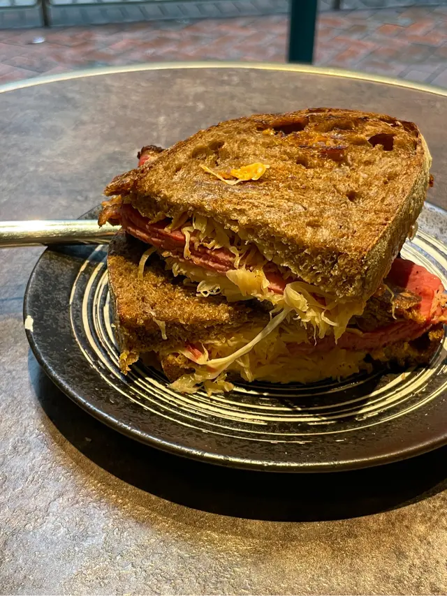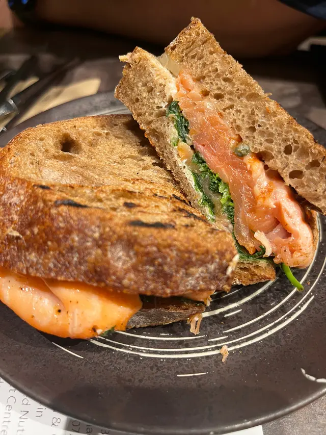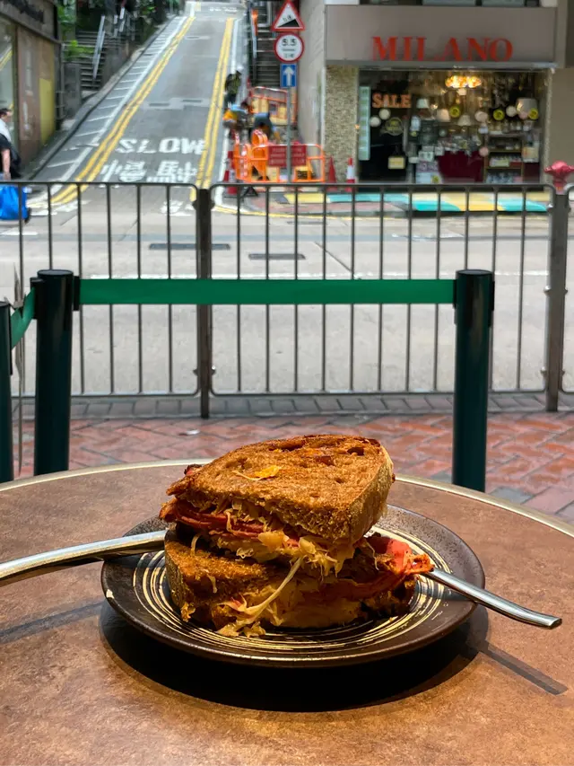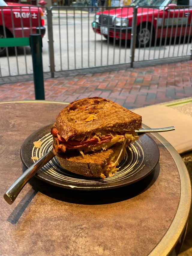 試cafe list入面bookmark左!佢有好多sandwich選擇 包或者甜品酥皮類都超多 如果係麵包控 可以同frd嗌一個大sandwich 再嗌D甜點share😆🥪pastrami sauerkraut 💰72最大portion最值得一試嘅sandwich 賣相真係超豐富 有齊德國酸菜 (泡菜?)芝士同pastrami 牛肉 包體用嘅係德國黑麥包 硬身D同埋無油健康D酸菜佔比好大 咬落去每啖都會由酸菜主導芝士存在感還好(雖然觀感好靚)牛肉醃味唔重整體有點顛覆我想像 係個幾小清新嘅sando🥪cubano💰69古巴三文治就係手撕豬肉 火腿 芝士 醃酸瓜同生菜 口感會比較清新D 但整體嘅肉味都唔算好突出後尾仲要被炸蒜取締左成個味 所以唔係好符合個人口味(我會比較鍾意燒烤味多D嘅pulled pork)🥪turkey brie💰69包體仍然係黑麥麵包 食多左會覺得好乾身不過入面有層rasberry+番茄醬?多D風味火雞肉好清新 加埋brie芝士簡直一流 幾freshy!🥐果仁三兄弟開心果軟心酥💰38睇名都會想嘗試嘅組合 表面有齊開心果 腰果 杏仁碎 烘烤顏色好靚 切開會有custard流出來 所以叫軟心酥入面酥皮會比較淋D 但都唔錯 幾香甜!🥐cinnamon wheel💰29肉桂控舉手 呢個係酥皮版嘅肉桂捲 上面有D開心果碎同糖嘅點綴 烘烤得比較深色 所以食落會有小小苦內裡油份浸淋小小就會比較軟身 有D食緊椰蓉/椰絲嘅口感 冇咩麵包體口感(可能已經偏向蛋糕)整體肉桂味唔算好突出(我一定要試埋baked by shangrila😭)🥧apple crumble tart💰33唔鍾意肉桂嘅都有福了 呢隻就會係蘋果金寶(冇肉桂版)酥皮開得好靚 淺金黃色 但油分完全唔重 食落就係非常脆嘅感覺蘋果切成條狀 唔係蘋果蓉嘅感覺 但都幾軟custard真係好正😭係必試item!整體來講呢間真係超多甜品同sandwich選擇 如果係鍾意食包當一餐嘅人真係可以一試 或者買返去做早餐都正😆…查看更多