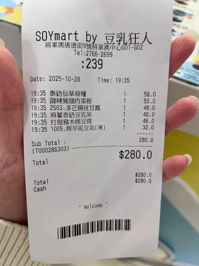 SOYmart by 豆乳狂人 (將軍澳) 網址: https://s.openrice.com/QrbS0ka8C00 地址: 香港將軍澳唐德街9號將軍澳中心G樓G01及G02號舖 電話: +852 27662699