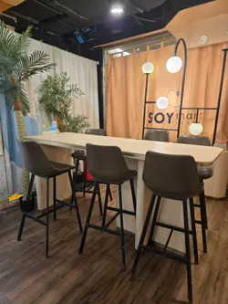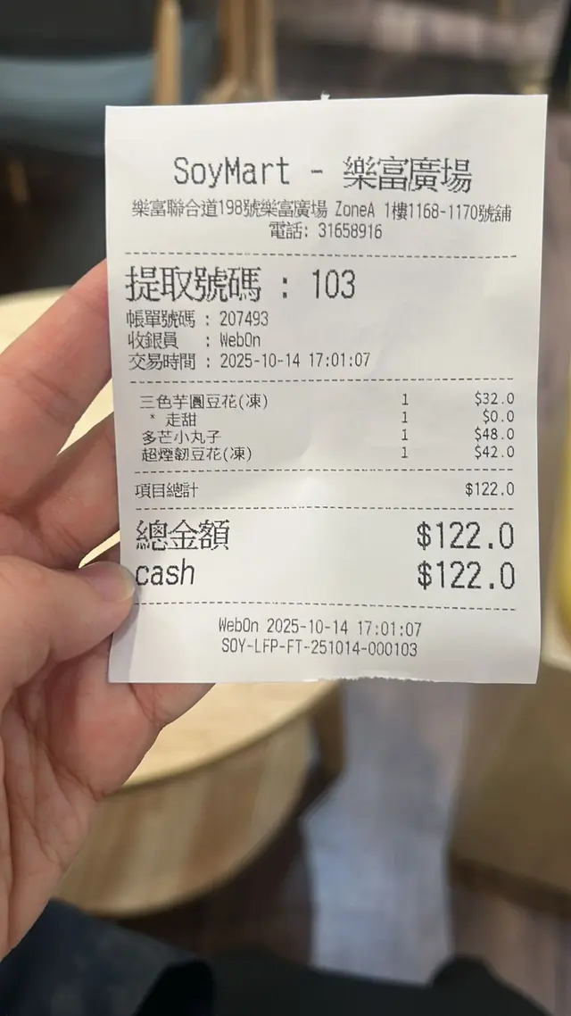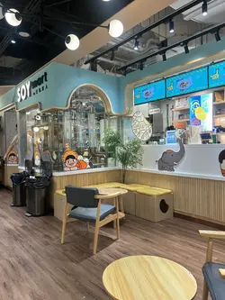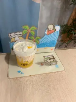在摩士公園打完波,在地老友推介我們來到「樂富廣場」的「SOYmart by 豆乳狂人」吃個甜品下午茶,因為其甜品甚富特色,份量十足,加上以鮮製豆乳及豆花製作,更富營養:)。下午茶時段,都是些學生哥、銀髮族光顧的多,而且,外賣的也不少。店內裝潢骨子,地方亦闊落,一室淺木色系,予人感覺舒服悠閒。此外,正正推出一系列期間限定的榴槤產品,所以,店內有不少裝飾都以此為題,好些彩繪都頗得意,朋友是榴槤控,這系列的甜點是其必然之選