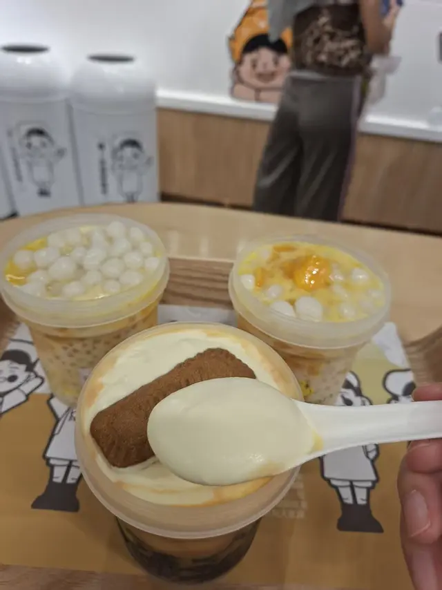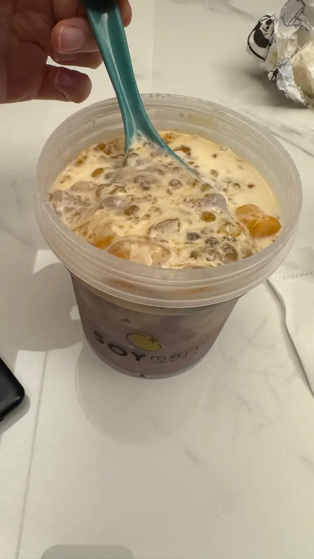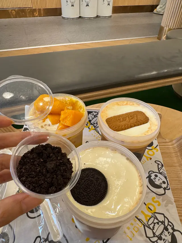 今日係第1次去海之商場就奉獻左食【豆乳狂人】~豆乳狂人一聽個名就知道係以豆乳為主打,仲有好多豆乳甜品和創新的粢飯!今次特登去海之戀分店係因為可以堂食之外,仲有全新【開心果系列】+ 【Gold純度鹹蛋系列】!!—吉烈豬扒粢蛋飯 $45 / 牛油果鰻魚玉子粢飯 $55對於食粢飯有要求的我….呢2個粢飯完勝! VERY OUSTANDING !!! 最估5到牛油果+玉子+鰻魚配搭油炸鬼+肉鬆,食到尾都食到有餡!好滿足~ 吉列豬扒絕對係啖啖肉既朋友仔首選~ 創新都倏得咁出色,下次要試埋傳統口味!!!💚全新開心果系列💚✨開心之選 $68 ✨我想講【開心之選】係好味到CRY LOL!!!! 9份直送既芋圓,配搭以法國 PATISFRANCE 開心果醬製成的香濃開心果奶蓋,底層西米+冰糖凍凍,開果味非常之濃郁~食晒一半都5覺得膩~ ✨杜拜開心Tiramisu $72✨LADY FINGERS 嗦哂D咖啡味,咖啡味相較濃,底層係8.6 特濃豆乳製成的pudding!上層奶蓋係由法國+日本純天然既開心醬,再灑上「杜拜開心果脆脆」+ 開心果碎!先甘後甜~🩷但私心推介一定係【開心之選】! Trust me!!—✨小食✨Gold 純度鹹蛋黃炸脆雞 $48 / Gold純度鹹蛋黃Mini豆 $38 / 地道避風塘粟米$34 / 酥炸雞軟骨 $38喜歡熱氣+鹹蛋既朋友仔都一定會必點的系列~~~💛多芒西米 $35 / 多芒楊枝甘露 $352款芒果系列都超多芒果,味道不甜,所以減脂其間都係不錯之選。豆乳紅茶布丁 $32 / 珍珠桃膠豆乳(凍) $322款豆乳都5甜,桃膠份量都不少,值得推介~人均消費: 27X (2人)食物質素+ 服務: 8/10…查看更多
