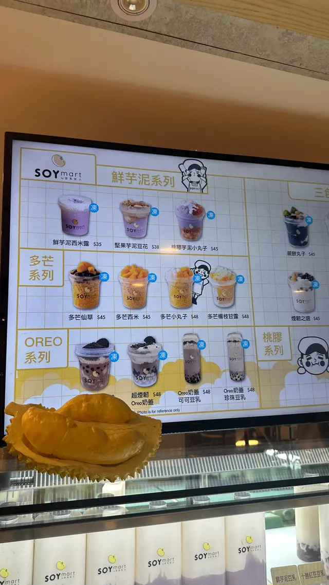 今日行過黃大仙中心,突然間好掛住「SOYmart 豆乳狂人」嘅手工芋圓,二話不說就入咗去幫襯。今次見佢哋有新推出嘅泰奶系列,就叫咗幾款試吓。泰奶仙草麻糬:泰式奶茶嘅味道非常突出,甜度適中,唔會好膩。仙草好滑,帶點回甘。最正係啲麻糬,真係好煙韌,同泰奶好夾,口感層次好豐富。推薦俾鍾意飲泰奶嘅朋友!牛油果吉列蝦青瓜絲粢飯:呢個真係創意十足!將傳統粢飯大變身,用牛油果嘅軟滑同吉列蝦嘅香脆形成對比,中間夾住清新嘅青瓜絲,完全唔會覺得油膩。個人口味覺得比傳統粢飯更出色,值得一試。招牌豆花:一如既往咁高水準!豆花質地非常滑,豆味香濃,食落好舒服。係佢哋嘅招牌,果然冇令人失望,食幾多次都係咁好味。…查看更多