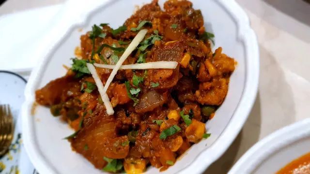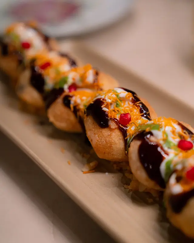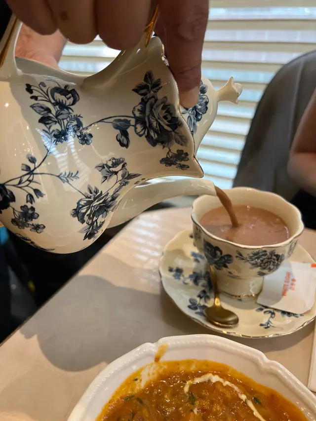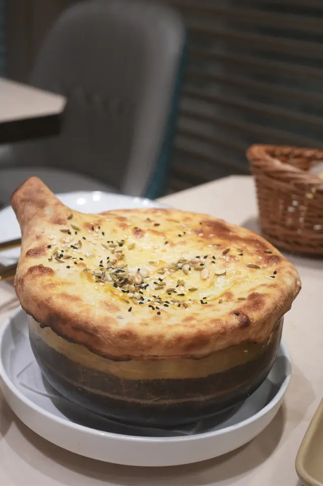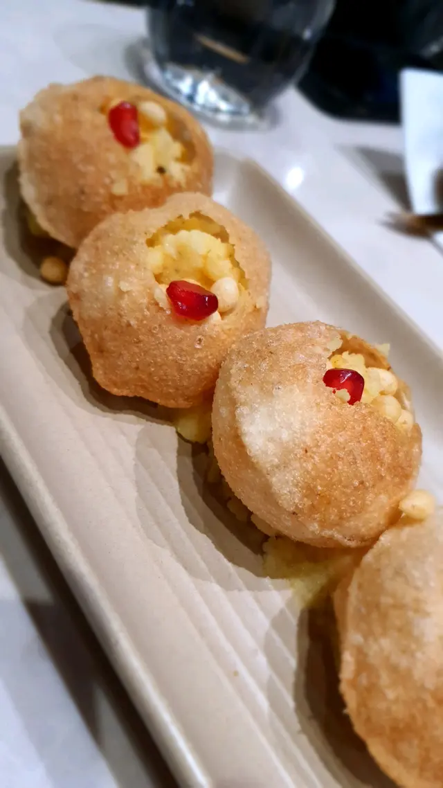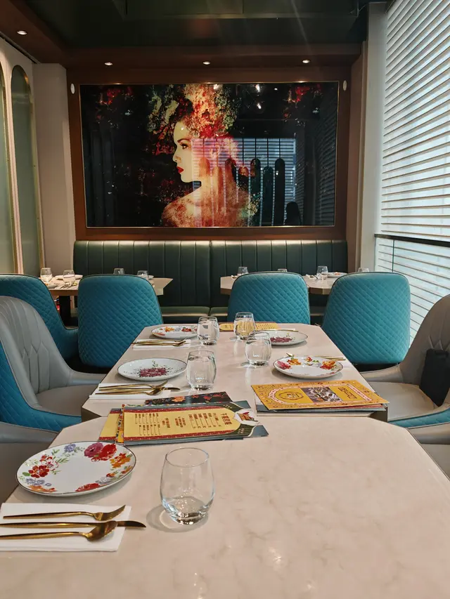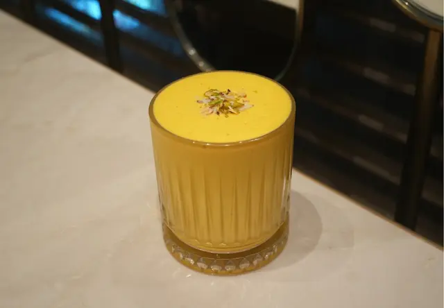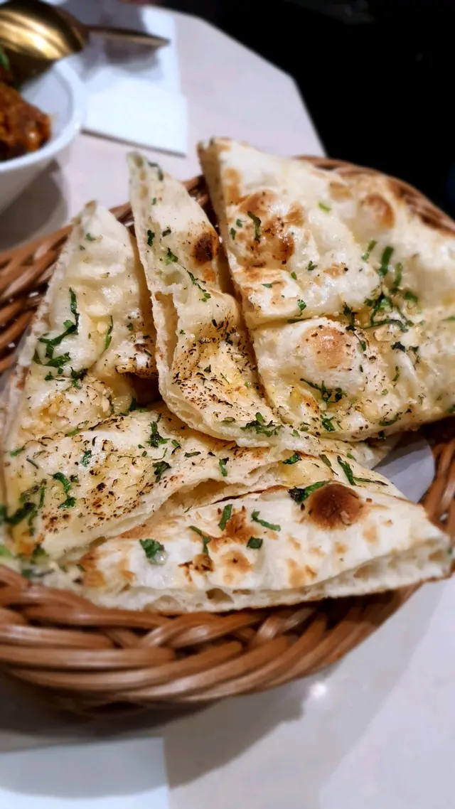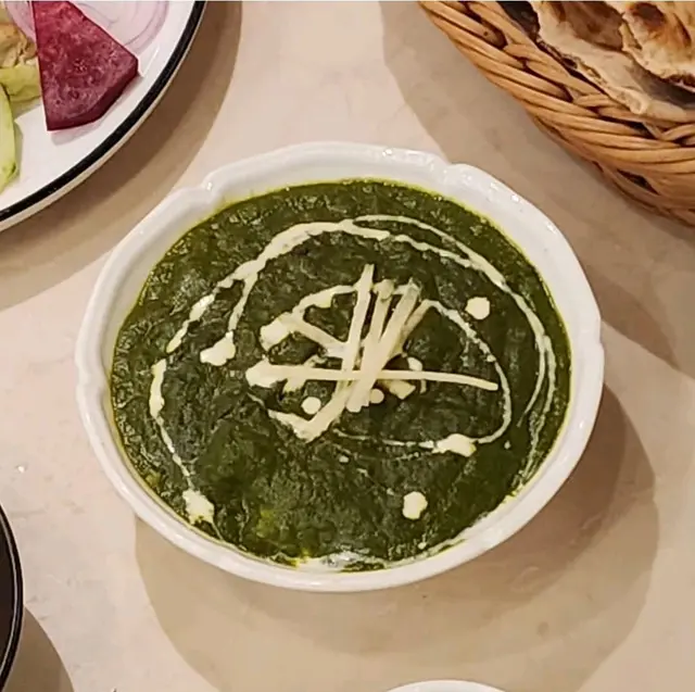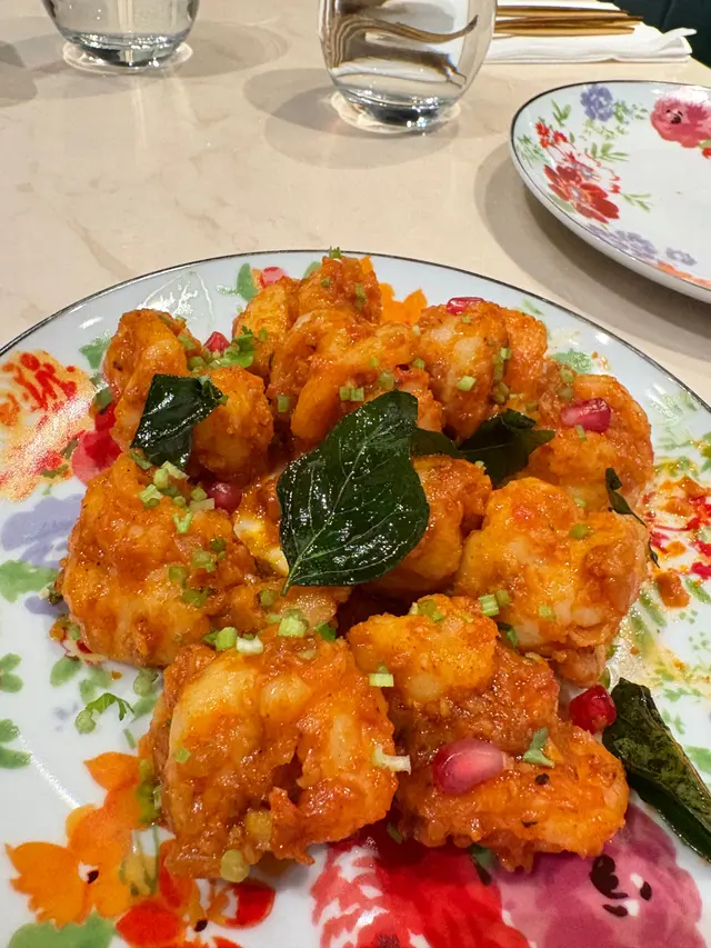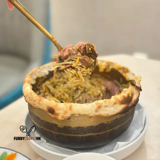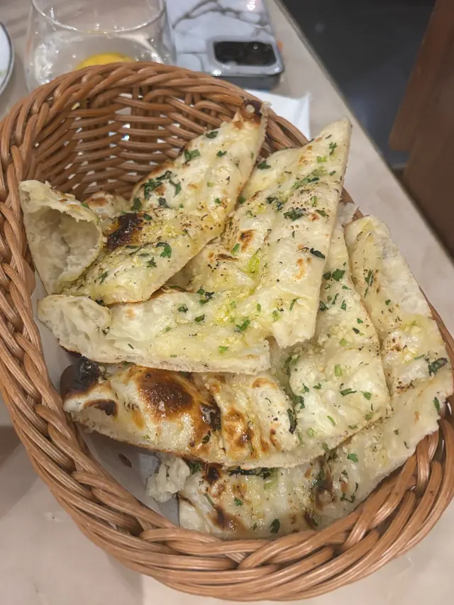 尖沙咀寶勒巷有間印度菜餐廳🇮🇳原來係由前杜拜皇室御廚主理👨🏻🍳採用天然香料代替人造色素來製作Fusion印度菜🍽️ 一到門口就已經見到色彩繽紛既手繪牆畫,入去餐廳後,藍綠色配白色,營造優雅又舒適既感覺✨今次同哥嫂來食晚餐,我地叫左:.🍗胡椒烤雞(半件)睇賣相就知用足香料去烤香,我地揀左小辣,雞皮焦香脆,內裡雞肉卻嫩滑多汁,旁伴沙律菜同薄荷乳酪!.🍱海德拉巴羊腿香飯羊腿飯係一鍋咁上,頂層有酥皮包住熔香🥧 會有專人幫你切開同撈勻,羊腿經慢煮6小時,所以肉質軟腍!香飯撈埋醬汁食幾惹味.🥘奶油雞Butter Chicken 係經典印度菜,醬汁濃郁且豐富,撈飯或叫Naan點醬食都好夾!.🥙脆餅籃裡面有兩款,一款係薄脆片,脆卜卜!另一款係自家製炸蝦片,點上旁伴的薄荷乳酪夾哂.🥭Golden Mango LassiLassi係食印度出名既招牌飲品,即芒果乳酪,口感好滑,芒果味道又香又濃郁,好飲!.🍸Masala Cutting Thai Sour呢杯係cocktail,帶點肉桂香,味道微甜,又幾ok!.見到呢度Set lunch有齊前菜、主菜、自選烤餅或香飯、甜品同飲品,仲有Vegan set,$98起就有,下次試下lunch先!…查看更多
