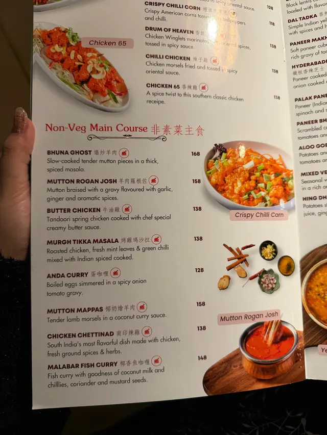 🧈 牛油雞: 印度菜嘅靈魂當然係牛油雞啦!佢哋個牛油雞真係冇得輸,雞肉嫩滑到一個點,個醬汁又creamy又香濃,甜甜地帶點微辣,用嚟撈點Naan都係天堂級享受,食到舔舔脷!🍚
