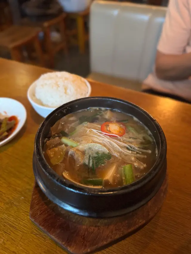 尖沙咀韓國街你去過未?未去過都唔緊要,不過可能好大機會行過都冇留意!最近我同朋友想食韓國嘢,就去咗 Ssal Bori Ssal,主打米酒 + 地道韓食,係香港首間以米酒做主打嘅韓國餐廳~🇰🇷🍶🕛 12 點到 12:30 已經坐滿!我哋為咗唔使排隊,特登 12 點 Sharp 開門時去到,點知坐低冇耐,成間店已經 Full House 😮 一入去已經聽到背景播住最新最 Hit 嘅 K-Pop,裝修簡約得嚟有啲小清新~🍽 開餐前送上 3 款小食 (可以 refill!) 泡菜:唔會過鹹幾開胃~ 麻油豆芽:麻油味唔太重,清清地幾好~ 韓式魚片:薄身微甜,口感煙韌。🍢 魚糕塘湯 $298 呢個魚糕湯入面除咗有好味嘅魚糕串,仲有大粒又肥美嘅青口、QQ 嘅八爪魚、翠玉瓜、金菇、韭菜等等 🍲🔥 湯底清甜唔油膩,份量多,3-4 個人 Share 都得!🍗 醬油蒜蓉炸雞 $120 望落賣相還可以,不過唔係即叫即炸,所以脆口程度不似預期。醬油同蒜香味偏淡,雞肉比較實,勝在無骨方便食… 但如果鍾意食熱辣辣又爆汁嘅炸雞,呢款可能未必啱你!🍶 Mak So Sa 米酒 Cocktail $110 Mak So Sa 係用米酒 + 燒酒 + 雪碧 Mix 出嚟嘅特飲,甜甜地帶微酒香,最搶眼係一整個金色壺上枱,夠晒韓式風味 😆 Ssal Bori Ssal 地方唔大,但又未至於細到食完想快啲走人。慢慢食飲住米酒,聽住 K-pop,坐坐下接近兩點已經冇咁多人。…查看更多