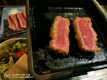 收工後都九點了,但很靜靜地享受一個人的時光。望著窗外的夜景,很想這一刻表現得男人般的豪邁。二話不說來一客吉列炸牛扒定食配一支Estrella Damm Inedit 吧。啤酒入口順滑而且很香,淡淡麥味配甘草及橙皮質地清爽,更帶輕微碳酸有點像飲礦泉水。定食以和風設計,混合了開胃的。碎魚乾、芝麻、海苔等。基本上單吃話個飯都很滿足。主角都差不多煎好了,既然經已吉列炸過的牛扒就不需煎太久,個人喜歡煎香鎖住肉汁就夠了。跟常吃到的吉烈豬排不同的地方就是肉味濃很多,牛扒不宜過燒得太熟否則口感就內外不協調了。至於前菜的豆腐及沙律都很清新,中和一下油膩感。…查看更多