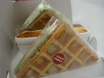 After trying the apple and cinnamon crumble last which failed to impress me, this time I tried the strawberry cream cake and also got one of those waffle sandwiches.The cakes there are not really good, the strawberry one was just cream.I was a bit skeptical with the waffles, they just looks like colourful cartoon food, especially the berry ones.The waffle itself was not crunchy, but slightly soft, and the cream inside was hazelnut and chocolate, I was enlightened by the hazelnuts because they were quite big in size, rather than tiny nutty particles.The chocolate cream, which I thought would be too creamy, turned out quite light, yet the texture was quite thick.Previous review:http://www.openrice.com/restaurant/commentdetail.htm?commentid=2098534Read More