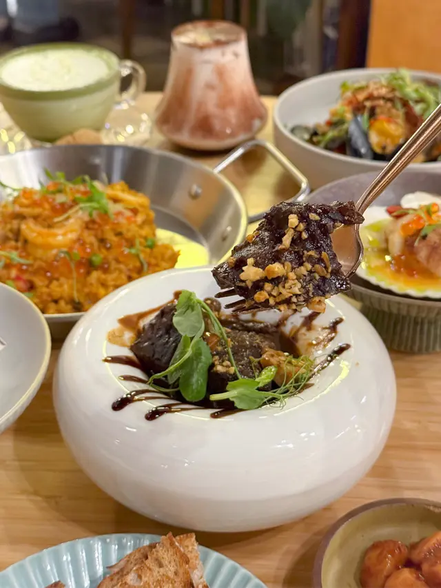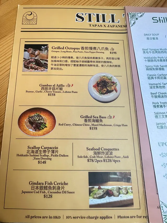 平時好少去土瓜灣,啟岸住宅樓下有個小商場都幾多嘢食,有間西班牙小酒館Still🍹環境:8/10餐廳位於啟岸一樓,整個小商場都係食肆為主,離地鐵站大概5分鐘路程🥰食物:7.5/10Amaebi Linguine with Uni Sauce $148🦐甜蝦鮮甜,海膽同意粉混為一體,意粉相當掛汁,意粉煮得啱啱好有咬口,整體感覺好正👍🏿Pork Chop & Egg Salad平時我比較少食豬🐷因為好驚會韌,今次完全冇呢個感覺而且覺得相當Juicy,蛋沙律混和洋蔥等配料相當清新🤣+Daily Dessert $28是日甜品竟然係churros ,口感煙靭,砂糖同肉桂嘅味道不停衝擊味蕾,仲可以配黑糖醬,甜品控嘅朋友就一定要點🤩Still Tea Sangria $15果茶有橙🍊蘋果🍎藍莓🫐等等水果配合茶底,感覺相當清新,而且以果味為主唔會好甜,夏天飲相當消暑解渴🥰Vanilla Ice Cream Latte $15咖啡配合雲呢拿雪糕,整體偏甜,如果鍾意飲甜咖啡嘅可以試吓😍💰性價比:8/10Lunch set 人均都係ard $100~ 加$28就可以選擇黑松露薯條/是日甜品/海鮮炸波波,加$15就可以升級冇酒精飲品,整體性價比相當高🤪…查看更多