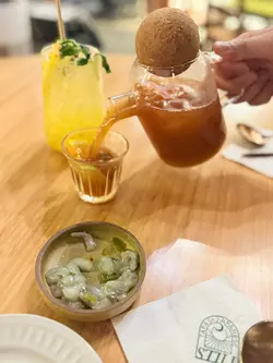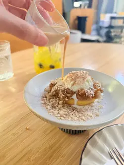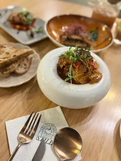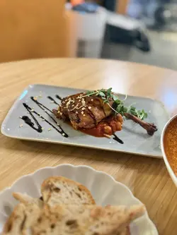 咁啱經過土瓜灣見到有新住宅裏便有個商場原來有間食西班牙嘅餐廳,我朋友都一齊諗呢間嘢好特別就嚟試吓dinner😁西班牙蒜片蝦我想講佢個汁真係超級好食,酸酸地又好開胃令又偏少少難度好襯西班牙嘅風味而佢嘅香蒜片撈埋啲鮮蝦簡直係非常之格而且個蝦非常彈牙,份量都啱啱好🤩油封鴨腿本人真係好鍾意食鴨鵝個鴨腿嚟試吓由風乾咗嘅鴨,其實佢又唔會太油膩嘅,但係外皮都係好滑,一絲絲嘅肉完全一啲都唔嚡,味道啱啱好香煎海鱸魚本人唔係太鍾意食魚皮,但係佢煎得好脆口而佢嘅肉質非常之滑鱸鱸魚一啲都唔腥😗而且好有蒜香嘅味道好清淡,食完呢一道菜我就可以食主菜🤩主菜澳洲M6肉眼蓋等咗一陣終於出場啦🥳M6肉眼超好食,食落去有浸淡淡嘅牛臊味肉汁好嫩滑我就選擇咗七成熟,中間都仲係粉嫩嫩,口感一啲都唔嚡,份量都比較多啊,兩個都食啱啱好😋甜品焦糖蘋果金寶配雲呢拿雪糕到最後主角食完之後都要食返個甜品進入我嘅第四個胃🙂↔️我最鍾意食嘅金寶啊蘋果焗得好腍,而且肉桂係我最鍾意食😙配埋個雲呢拿雪糕,熱同凍之間食落去嗰種口感更加豐富😜西班牙水果茶水果茶都好特別,用咗個細嘅杯仔然後好似飲水果茶嘅樽裝俾你慢慢品嚐而去。裏面都有好多種嘅生果感覺上都帶點酸味,而且佢唔會太甜,中和我食咗咁油膩嘅主菜🥰西班牙鮮果特飲我想講呢個特飲超好味,唔係用普通梳打水,而係加咗七喜,裏面都有Burberry同埋芒果果肉,酸酸甜甜都幾適合我,如果係加埋熱情果就Perfect😙…查看更多