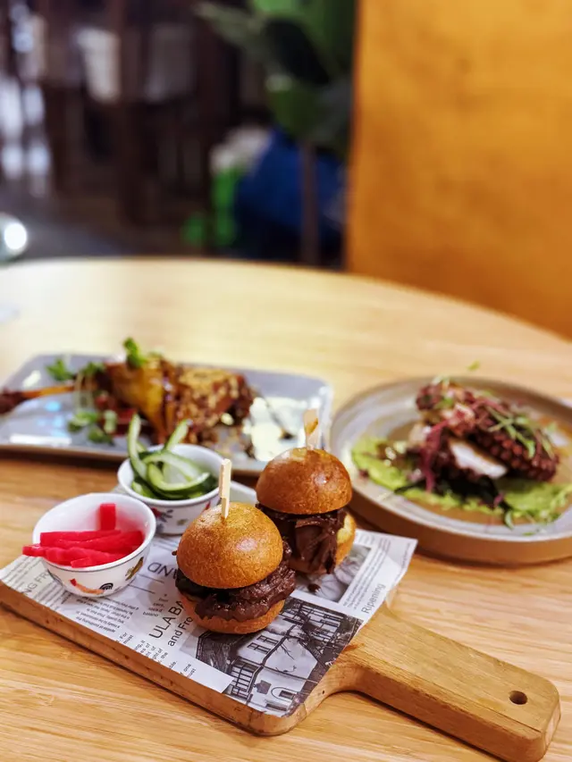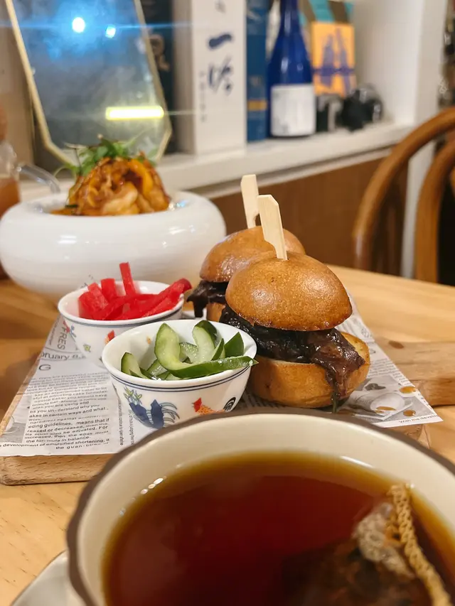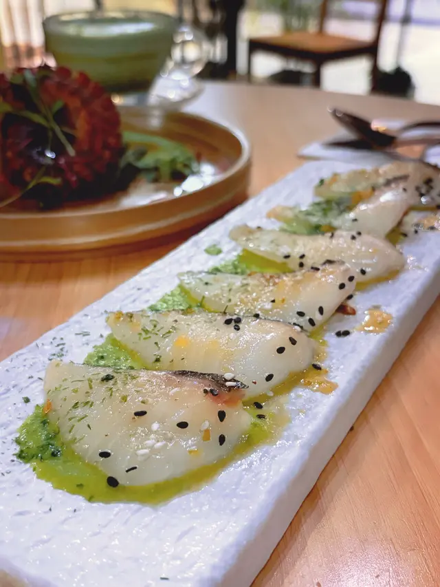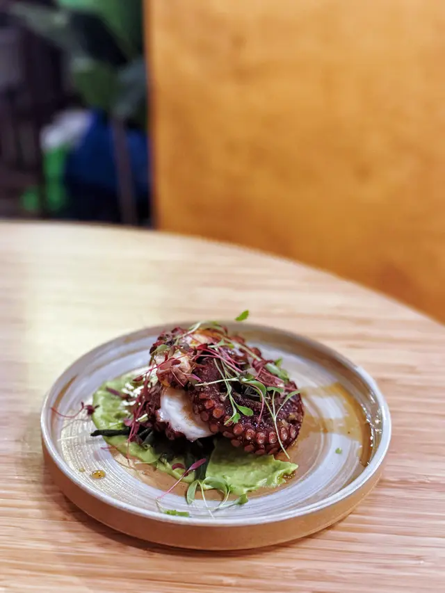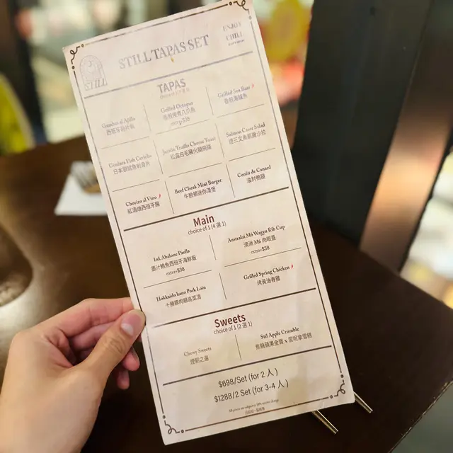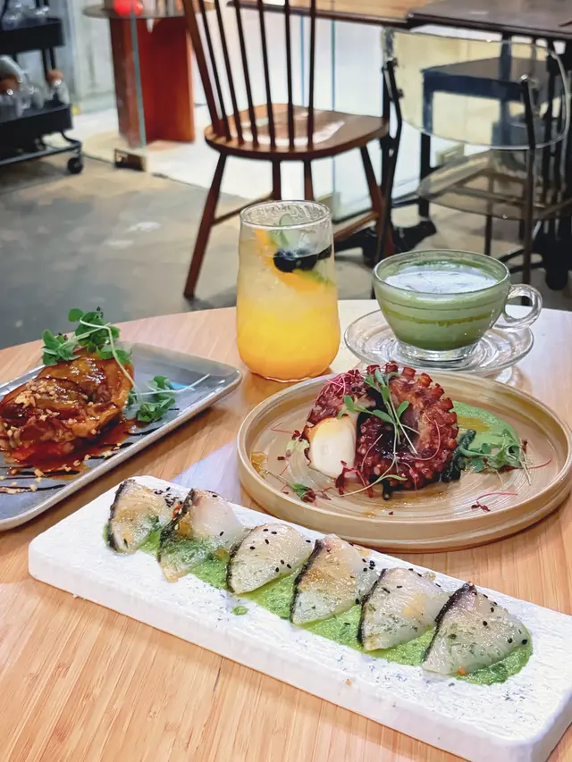來到土瓜灣一間主打西班牙和日式fusion菜式的餐廳小店,餐廳的套餐Menu可以選全海鮮的配搭,加上而家晚市做緊85折,性價比很高,很吸引眼球。👫🍽️🇪🇸🇯🇵✨ Still Tea Sangria($58),這款特色的水果茶由芒果和熱情果調製,帶點清新也有些茶澀味,也有種解膩的感覺。🥭🍹✨ Cafe Latte($45),鮮奶咖啡口感順滑,還有靚靚的拉花。☕️🥛在2人套餐方面,包3款小食、1款主食和1款甜品,選擇多多,配搭多樣化。🦐🦑🐟🍰🌟TAPAS✨ 西班牙蒜片蝦,虎蝦混合了蒜片、蝦頭、龍蝦汁一齊熬煮,蝦肉鮮嫩多汁爽口,食到最後將蘸取底部的醬汁塗抹在麵包上,真是回味無窮。🦐🧄✨ 香煎慢煮八爪魚(+$38),八爪魚經過3小時的慢煮,粗身的八爪魚變得口感柔軟而富有彈性,完全不會過於韌硬。配以柚子胡椒醬和牛油豆蓉,為這道菜增添了層次感。🐙🔥✨ 香煎海鱸魚,外層焦香,內裡則保持了魚肉的鮮嫩。旁邊搭配的煙肉脆片增加了香脆口感,而紅咖喱醬汁底則帶來了一絲香辣與惹味。🐟🥓🌟Main✨ 墨汁鮑魚西班牙海鮮飯(+$38),大隻的鮑魚擺盤精美,令人賞心悅目。飯中加入了多種海鮮,如入口即化的左口魚、粒粒鮮香爽脆的三文魚籽、彈牙的蝦和柔軟的魷魚圈,每種食材都展現出各自的特色。此外,飯底用墨汁和魚湯熬制,不僅色澤誘人,還讓整體口感更加濕潤,簡直是出色之作。🦑🥘🖤✨ Chewy Sweets,甜品就是我喜愛的西班牙甜油條加上抹茶味的蕨餅,甜油條外脆內煙韌,外皮薄薄的塗上一層砂糖,再倒上朱古力醬,完美的配搭。而抹茶蕨餅則清新不膩,為這餐飯劃上了完美的句號。🫔🍫…查看更多
