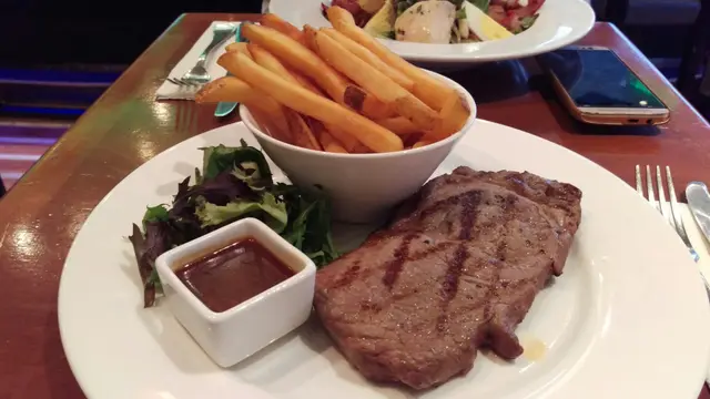 個日晚上有公司活動係蘭桂坊, 所以諗住先去食D野再去個活動都未遲!蘭桂坊要搵可以飽肚, 又要唔算太貴嘅野食不多.... 所以就去左係上面轉角位個間Stormies!同兩個同事去食, 叫左兩個前菜, 兩個主食就算, 都唔係諗住食到咁飽..叫左個沙律~ 中規中矩啦沙律菜都好新鮮, 整體係OK, 但無咩特別就真... 不過一個沙律你都唔好期望佢好特別啦好嗎? XD之後就到雞翼!呢個雞翼我就覺得唔錯啦~ 個雞翼本身已炸過, 好香口, 再加上自己製有小小微辣的醬汁, 有D BBQ 味道, 都幾惹味, 都幾好食~而且唔好睇佢一個Bucket, 其實入面都有7/8隻雞翼, 都幾唔錯~ 加杯酒就一流XD 不過我無飲酒呢晚~ 一陣仲有工作~個扒都無咩問題, 叫左5成熟都真係煎到大約5成熟~扒嘅質素以呢個價都算OK, 小小覺得塊扒多左D油脂, 但都幾好食~ 幾有咬口得黎又唔會老~最後就到呢個Fish & Chips呢個就真心太OK, 個粉太厚, 入面有D古怪, 我食左一兩啖就有D卻步, 但薯條個D就無問題, 個魚加小小汁就都尚算可吃, 但呢個菜色就一般般啦~ 希望有改善啦~大致上都還可以啦~ 係蘭桂坊有得飲有得食 試吓無妨...…查看更多