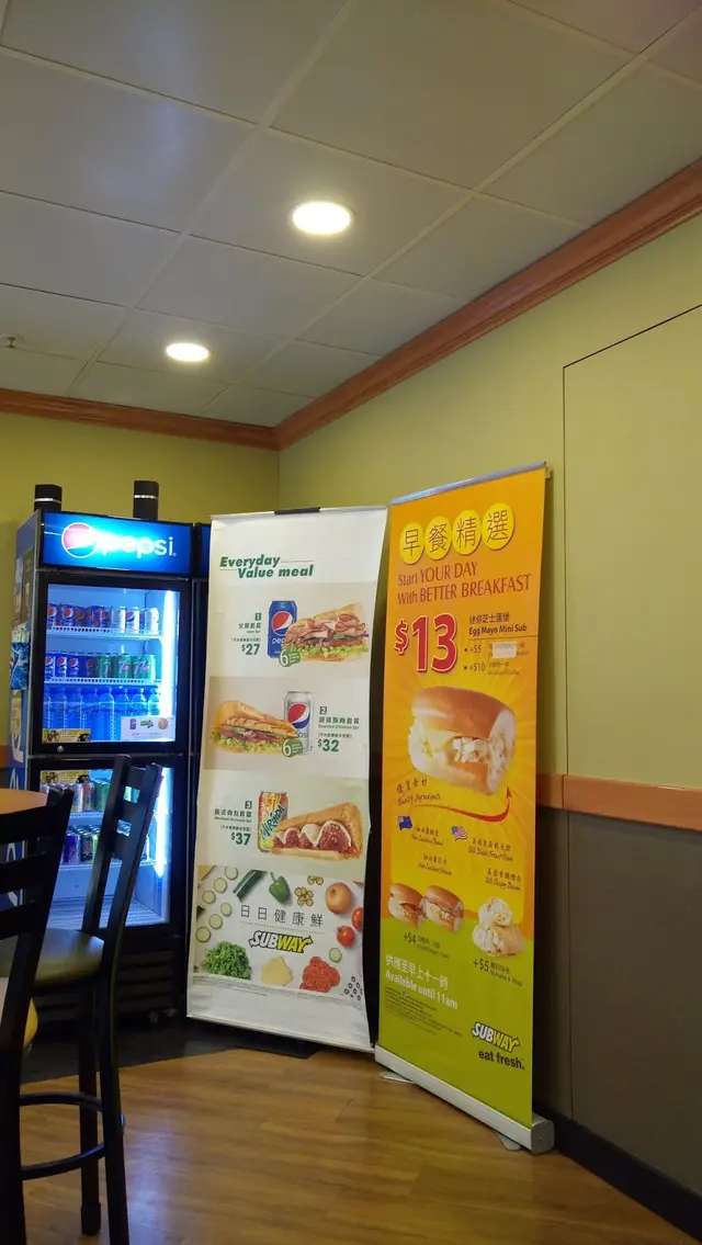 有天早上行過安定邨覺得有點肚餓,看見subway居然有堂食咁神奇所以便入去試試。店員居然不是一貫的英文人士,而是香港姐姐,令人感覺比較親切,可能是因為開在屋邨的關係吧。那個早餐十分抵食,一個包只需20蚊。 我叫了一個煙肉蛋芝士包, 煙肉十分香,而且芝士也非常充足,再加上蛋沙律三者混合一齊,三者非常配合,令人覺得很滿足。另外,店內居然有在餐廳比較少見的百事無糖可樂,我當然買了一個來配包食座位也十分寬敞,在店內食完後要自己清理枱面,但店內也十分整潔,感覺不錯。查看更多