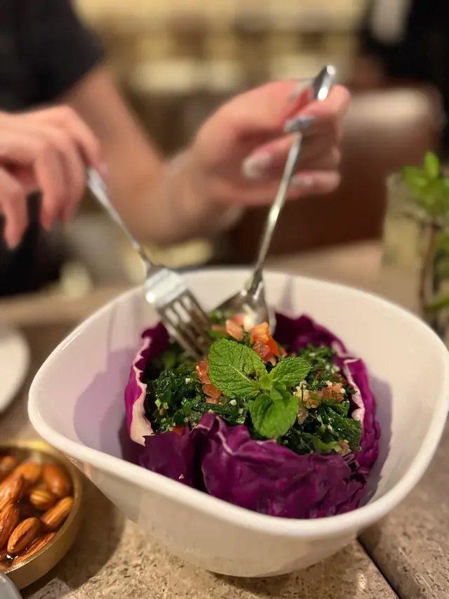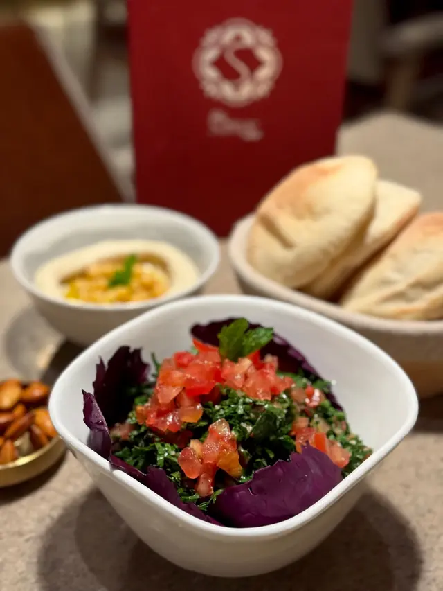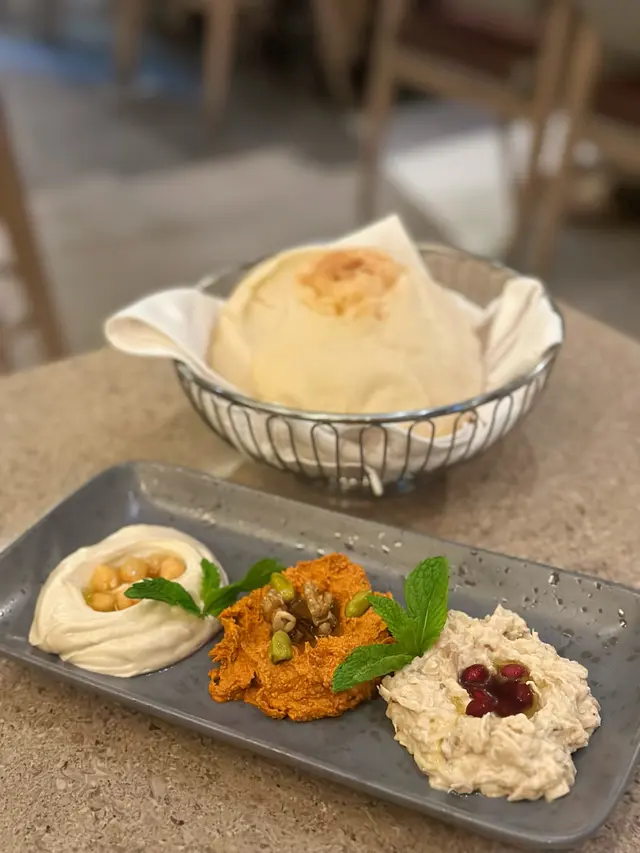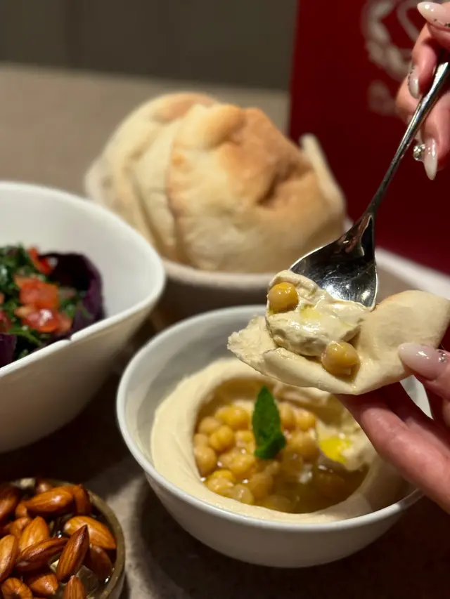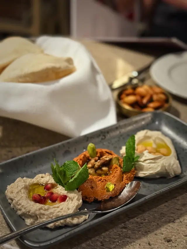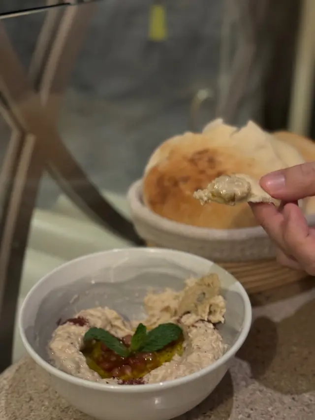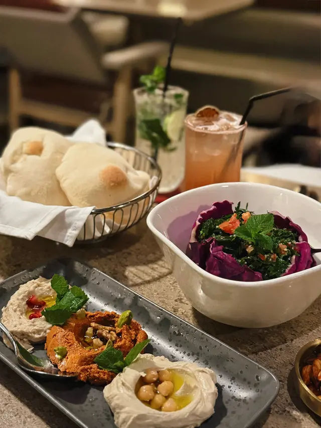充滿冒險性的本人喜歡嚐新.吃厭了中西日韓泰菜式,不妨試試與別不同的異國菜,刺激一下味蕾!此店 主打黎巴嫩菜,同時糅合地中海飲食文化,挺獨特!雖然位置有點格涉但也有不少客人.而當晚相伴體驗的獨孤一味朋友,對菜式也很受落.難怪於亞洲多地獲得獎項,同時在上海也有分店!原來一直靜悄悄地被各地大眾歡迎著~▪️ᴍᴇᴢᴢᴇ ꜱᴇʟᴇᴄᴛɪᴏɴ($𝟣𝟫𝟪)經典黎巴嫩沾醬三重奏,以鷹嘴豆泥為基底,款款幼滑.一個原味,一款配合着煙燻香氣的茄子味,以及既甜又添辣的紅椒味▪️ᴛᴀʙʙᴏᴜʟᴇɴ($𝟣𝟥𝟪)黎巴嫩傳統沙拉,由切碎的新鮮歐芹葉、薄荷葉、番茄、洋蔥和細碎小麥製成,佐以檸檬橄欖油清新開胃▪️ᴋɪʙʙᴇʜ($𝟣𝟣𝟪)酥脆的一顆顆大球,其外殼由細碎的小麥製成,裡面塞滿了羊肉碎肉、牛肉碎、洋蔥、松子,並用芳香的香料調味▪️ꜰᴀʟᴀꜰᴇʟ($𝟣𝟥𝟪)把鷹嘴豆炸成一個球體,口感如薯蓉.脆口同時帶豆香,加上奶白色的黎巴嫩芝麻醬如乳酪般微酸,對於炸物類個人比較喜愛這款▪️ᴄʜᴀʀᴄᴏᴀʟ ᴍɪx ɢʀɪʟʟ ($𝟦𝟩𝟪/ꜱᴍᴀʟʟ)雜錦烤肉一個大盤上枱,令人興奮.有雞肉、牛肉、羊架及羊肉串.每款肉質幼嫩不嚡口,特別是雞肉及羊架.前者嫩滑調味出色;後者沒多餘羊臊味而肉質柔軟.最喜歡配搭着的黎巴嫩蒜醬,令人吃得更上癮!▪️ᴄʜᴇᴇꜱᴇ ᴋᴜɴᴀꜰᴀ($𝟣𝟥𝟪)酥脆的麵團外層包裹著融化的芝士餡,再淋上甜美糖漿,並配搭着開心果碎.初嘗這個中東甜品,帶濃厚芝士香味,且甜又鹹,口感非常獨特,朋友也很喜歡!…查看更多