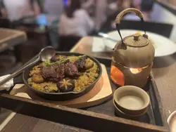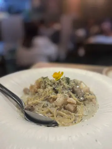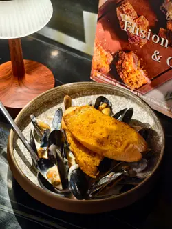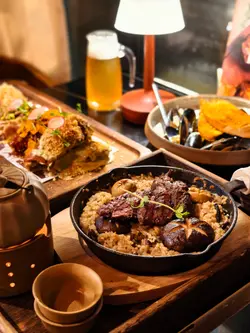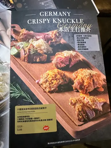 餐廳雖在一旁的角落,但晚上人氣挺高的,而且價錢不錯,餐點有特色,能吸引到不少人!而且挺特別有兩張室外的位置,這個時候坐真的挺舒服的。白酒煮法國藍青口配法包(124元)個頭不算很大,但味道鮮甜多汁,白汁有濃濃的酒香。蒜香法包有簡單烘香,是比較鬆軟的口感,沾上湯汁,味道更香四重風味德國豬手(188元)豬手挺驚喜的,想比起其他餐廳只有原味可選,但這裡一共有六種不同的味道,每次可選三款!這次我們就選了開心果蜜糖芥末,西式避風塘和香蒜黑椒。賣相真的挺不錯的,大大份的,還配有一杯自家製的啤酒,帶有清爽的柚子香,酒精濃度不太高,容易入口!開心果蜜糖芥末的就比較香甜,吃的時候配上開心果會更香。西式避風塘配的醬汁是芥末醬,辣度挺高的,但挺惹味的。香蒜黑椒特別地配上熱浪薯條,味道偏濃香。而本身豬手經過慢煮後,肉質軟滑多汁,表面鬆脆封門柳羊肚菌鍋仔飯配牛骨湯(192元)單點一個封門柳也要2百多,但這個就有了,還包括了鍋仔飯和牛骨湯,性價比不錯。封門柳肉質柔軟多汁,牛味香熟,熟度約五成熟。鍋仔飯有大量的菇菌,味道挺鮮的,又能增加口感,本身醬汁挺濃郁。牛骨湯可以直接喝,也可以加了到飯裡提升香味,挺清甜的。…查看更多