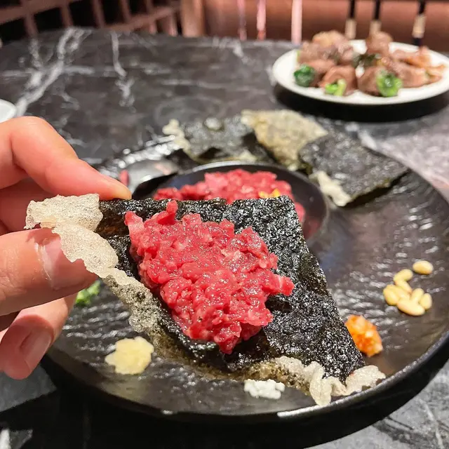 好一陣子没去韓國,就是有點想念韓國菜,所以放工來到同事介紹的Surasang。Surasang走現代路線,但帶韓式宮廷風,設計時尚典雅。餐牌圖文並茂。前菜是韓國菜不可或缺部份,這裏的前菜每款都好好食,尤其八爪魚,煙煙韌韌,食唔停口。拖羅海膽紫菜包飯粉紅色的拖羅蓉上是青蔥、三文魚子和海膽。小卡附有食法,攪拌是個療癒的過程,看到粉紅色橙色和青色混在一起,用搗布紫菜包裹,再用炸紫菜捲起!每一口都是拖羅的肥美,海膽的鮮味和紫菜的香脆,令人食唔停口!水芹菜蝦仁煎餅金黃的煎餅上是滿滿的蝦仁,水芹菜的爽脆和蝦仁的彈牙,令煎餅入口毫無厚重感,食多幾塊都不覺滯!韓式和牛雜菇鍋上台擺盤精美,紅白相間的牛肉是看得到的肥美!入口肉味濃,和一旁的雜菌是完美的配搭。整個燒的過程都由侍應幫忙,服務貼心。飲品方面,選擇都十分多,點的兩杯荔枝梳打和柚子梳打,都好好飲,用來送肉也不錯。不過下次如果不用揸車的話,就一定會試這裏的韓國特色酒類飲品!優美的環境、高質的食物和貼心的服務,是令人下次會回來的原因!…查看更多
