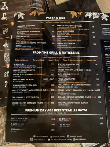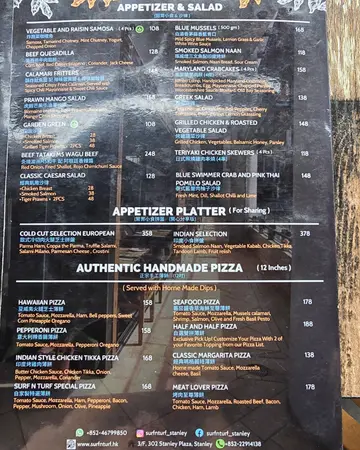 Surf & Turf Grill and Bar,坐落於赤柱廣場,坐擁迷人海景,絕對是個適合悠閒用餐的理想之選。餐廳主打西式Fusion菜,環境舒適宜人,更貼心歡迎寵物🐶,非常適合親子同樂,或是與毛孩一同享受美食。 首先,我們點了Chicken Tikka(印度咖哩馬薩拉雞),價格為$158。這道菜的咖哩香氣撲鼻,雞肉入味至極,搭配Plain Naan(印度烤餅)更是絕配,烤餅的香脆與咖哩的濃郁完美交織,令人回味無窮。 接著,我們品嚐了Scottish Salmon Fillet(烤蘇格蘭三文魚扒),價格為$268。三文魚扒烤製得恰到好處,外皮微焦,內裡卻鮮嫩多汁,魚肉的鮮甜在口中緩緩散開,令人陶醉。配菜方面,我們選擇了清爽的Tomato Salad和Garden Green田園沙律,兩者都非常清新解膩,為整體菜品增色不少。 甜品環節,我們點了Cheese Cake(紐約芝士蛋糕)和Tiramisu(意大利芝士蛋糕),價格均為$78。芝士蛋糕口感綿密,味道濃郁,而Tiramisu(提拉米蘇)的口感非常特別,入口即化,彷彿在吃雪糕般,咖啡的微苦與馬斯卡彭芝士的香甜完美融合,帶來多層次的味蕾享受。 飲品方面,我們點了Pineapple Smoothie和Mango Milkshake,價格都是$78。Smoothie口感順滑,水果味十足,而Milkshake則香甜可口,為整個用餐體驗增添了愉悅感。 總體而言,Surf & Turf的用餐體驗令人非常滿意。除了美味佳餚,服務態度也非常好,餐廳的氛圍亦令人印象深刻,特別是逢星期二至日晚上,餐廳會有現場音樂表演,每晚都有不同的主題,為用餐增添了熱鬧氣氛。總的來說,Surf & Turf絕對是個適合與家人朋友一同享受美食、欣賞海景、放鬆身心的好去處,也是赤柱Chill Out的最佳選擇! …查看更多