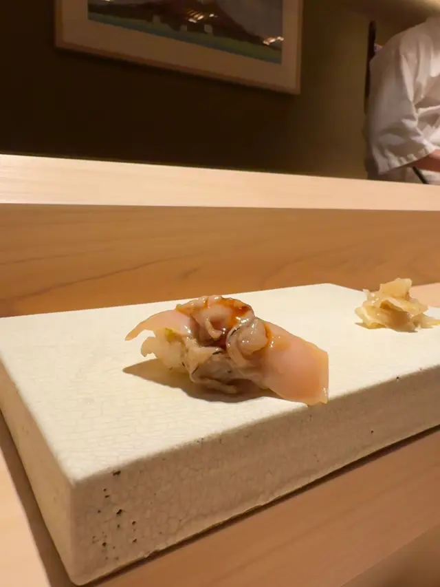 This sushi restaurant is located on 6/F of Foco in Central, helmed by Chef Kenichi Fujimoto. The restaurant has two servings for dinner, and we have booked for the first slot, starting at 6pm. Arriving sharp, the staff greets us warmly and shows us to our seats, at the middle of the 10 seat hinoki counter.The décor is premium, with warm and comfortable lighting, everything neat and organized. Chef Fujimoto is a handsome guy and able to speak fluent English, so it is easy to interact with him, and he is eager to share throughout the night the specialty of ingredients and how he has prepared them, creating a relax ambience for all diners.The Omakase menu is $2,980 each and I also order a bottle of Pierre Peters Blanc de Blancs Grande Reserve NV ($1,380) to pair. With everyone seated the dinner begins. From a large bowl Chef Fujimoto takes out a few large Awabi and start to prepare, while his sous chef pours the abalone soup for us as a starting warm-up. Very delicious and bursting with umami flavours.The Shimane black abalone has been steamed for more than six hours, with the chef cutting a wedge and also a thin slice, recommending us to eat the slice in original taste while pairing with the liver sauce and wasabi for the wedge. The abalone is amazing, very tender, and flavourful. The chef told us that it is now the season, but the biggest would be available in August, reaching over 1kg.I could smell the fragrance of crab when I arrive, and duly it comes, with the chef mixing the white and brown meat of the steamed Hokkaido Kegani, or horseshoe crab, together. We are suggested to experience its original flavours first, before adding the crab vinegar. It is another fantastic dish, the original taste is very sweet, with the vinegar not too sour and able to intensify the taste.The third course features Tako from Kanagawa. The large octopus tentacles have been massaged extensively to loosen the muscle before putting to steam, having a great texture, with no difficulty in chewing. Seasoned with a bit of green yuzu shavings, with a touch of wasabi, the intense flavours come bursting out on each bite. Very good indeed.We then witness how Chef Fujimoto prepares the Shari. Taking the steaming sushi rice from the kitchen, he pours them onto a large wood tray, spreading it out to lower down the temperature, and then mixing with the sushi vinegar. After tasting to his satisfaction, the rice is transferred to a smaller bucket for use, with the first batch serving to us to savour the remaining abalone liver sauce. The texture of the rice is truly exceptional, with great balance on stickiness, acidity, and temperature.Taking out from the kitchen are some Amadai on skewers. After grilling the tilefish on charcoal, hot oil is poured on the scales, getting them crispy and edible. The fish is served together with a rich and flavourful fish broth, cleverly compensating the milder taste of the fish with a boost of umami and enjoyment. The broth is so delicious that I scoop out every single drop.Next comes to the sushi part of the menu. The first one is Shima-Aji from Kagoshima. The striped jack mackerel is starting to be in the best season, with a nice delicate taste and good firm texture.The second one is Kuromutsu. I am surprised to see the bluefish features so early in the course as generally most chef will serve it towards the end, because of its fatty level and stronger palate. Here, the chef has lightly seared the skin on charcoal to give a bit of smoky taste and helps to vitalize the delicious fish oil.The third one is the beginning of the trio of Maguro. The tuna is from Nachikatsuura in Wakayama, weighing 140kg, medium in size. The Akami, or lean cut of tuna, has been soaked for a while in soy sauce, having a wonderful soft tenderness on the bite, as well as great balance on acidity.The fourth piece is Chu-Toro, with the medium-fatty tuna having an even softer bite than the last piece, good in umami and taste.The fifth piece is the prized O-Toro, of the Jabara part, with the signature white fatty lines. The surge of umami is mind-blowing and essentially melting in the mouth in texture.Serving as an intermittent dish, the chef cuts out pieces of Karasumi. He jokingly said that it was past its season but because he made too much, we could still enjoy them. Marinate by himself, he also shares that these can be kept in fridge for one year, even longer in freezer. Wrapped in yaki-mochi and nori, the grilled Japanese rice cake helps to balance the saltiness of the mullet roes nicely.Returning to the sixth sushi, it is my favourite type of squid, Aori-Ika. The chef cuts lightly on the surface so that the bigfin reef squid can be eaten easily, with a pinch of salt to season. The more I chew, the more sweetness it releases.Not wasting the tentacles of the bigfin reef squid, the sous chef has grilled them, brushing with a bit of soy sauce to season. A great snack to pair with beer!The seventh sushi features Aji, with the Japanese horse mackerel adding a bit of scallions to highlight the flavours. It is not yet the best in fattiness but already very good in taste.The eighth sushi is Hamaguri. The size of the hard clam must be huge, as the clam meat covers the whole shari entirely. The chef uses a sweet thick teriyaki sauce to add to its flavours, and there is not any weird or fishy taste at all. Very fresh and good quality clams.The ninth sushi is Kuruma-Ebi from Kagoshima. Compared with other restaurants, the tiger prawn here is not as well cooked, leaving a bit of rawness as reflected from the slight translucent appearance. The crunchy texture as a result has increased, but there is a downside of the flavours being less sweet. Apparently it is a trade-off, but a nice experience nonetheless.Then the chef prepares a gunkan roll using Murasaki-Uni from Hokkaido. The purple sea urchin is large in size, with a creamy texture and clean taste.Next is Unagi, with the eel beautifully grilled, having a crisp surface wh