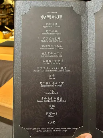前菜有南瓜枝豆豆腐、日本大根同柚子車厘茄,各款清新前菜喚醒味蕾✨❝ 岩手縣波紋真蠔生蠔肉質肥厚飽滿,入口有微微海水鹹香,隨後散發出奶油風味,尾韻清爽悠長✨❝ 赤座海老赤座海老蝦身晶瑩剔透,入口肉質Q彈多汁,咬落釋放出濃郁嘅鮮甜🤤❝ 深海池魚刺身深海池魚肉質柔嫩,魚油甘香細膩,很好吃!!❝ 真羽太真羽太肉質緊實而有彈性,味道清爽鮮甜,令人滿足☺️細碎嘅柚子皮散發出清新嘅柑橘香氣,微苦嘅餘韻中和魚肉嘅油脂感,細節盡顯心思✨❝ 金目鯛金目鯛肉質肥美,油脂濃香卻不膩,入口後油脂緩慢融化,不錯不錯🥰❝ 松葉蟹肉海膽壽司松葉蟹肉質細膩,清甜蟹肉配搭濃甜海膽,濃淡平衡剛剛好🫶🏻~❝ 醋鯖魚濃郁嘅魚油香與醋嘅清爽完美平衡,醬油更為魚料增添鹹香,這個配搭很不錯!❝ 原隻鮑魚配蟹味噌鮑魚軟嫩鮮甜,蟹味噌則味道鮮鹹而濃厚,同鮑魚嘅清甜形成強烈對比,令人回味無窮~❝ 海膽刺身(配沖繩海葡萄及淡雪鹽)海膽甘甜滑順,海葡萄口感清脆,再灑上淡雪鹽提升風味,口感層次極致豐富🔥❝ 石垣鯛石垣鯛鮮甜風味突出,質地緊實而有彈性,咀嚼口感極佳✌🏻❝ 即席煙燻A4和牛師博即席煙燻A4和後,煙燻香氣濃郁,和牛油脂分佈平均,口感香滑,呢個好正!!❝ 活北寄貝活北寄貝口感彈牙,貝肉鮮香,好出色喎👍🏻❝ 銀鱈魚銀鱈魚油香濃郁,輕輕燒過更迫出油脂勁香口!!頂層再以少許北海道味噌點綴,鹹甜完美平衡很喜歡🥰❝ 拖羅拖羅呈現粉紅帶白嘅大理石紋理,肉質厚實,油感超重😍 係教科書式好靚好好食嘅拖羅😭❤️❝ 拖羅海膽太卷呢款太卷裏面有黃蘿蔔、拖羅,面層加上海膽、醬油蛋黃同炸蔥🫶🏻~幾鍾意炸蔥嘅酥脆為整體增添焦香嘅口感,各款食材結合層次都好豐富!!不過真係好大嚿,食完飽肚感直線上升🆙🤣❝ 海鮮湯味道甘甜,各款海鮮增添咗味道層次,卻不搶奪湯底風味,入口溫潤暖胃很好呢~❝ 芝士雪糕甜品係芝士雪糕🍦 未食嗰陣諗緊會唔會好奇怪!食落覺得幾得意,好似食緊芝士蛋糕咁🤣 作為呢餐嘅收結十分滿足~…查看更多