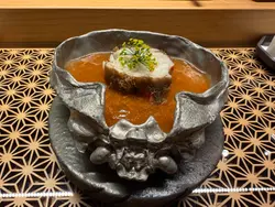 Seeing increasingly more media coverage of Chef Zinc, in recognition to what he did to promote the local seafood and produce, as well as his amazing food, I can also feel the pride as a regular patron. Today we return to this Shau Kei Wan secret haven to see what he has prepared for us.Occupying our usual spot on the 10-seat sushi counter, we were greeted by Chef Zinc and his team warmly. As I brought a bottle of wine to share with him, I did not order any sake. With the arrival of a couple of more guests, the dinner promptly started.First is the prized Uchiura Bay Kuro-Hokkigai with Yunnan Termites Mushroom. Chef Zinc first used the mushroom to prepare a broth to lightly poach the surf clam, making some cuts for easy bite, before serving together with the shredded mushroom. The combined bouncy and soft texture of the two was very pleasant, and the broth was sweet with umami.Second is the seasonal Kobako-Gani Chawanmushi. Chef Zinc toasted the shell of female snow crab to make a bisque from the extract, then added sauteed crab miso to whisked egg to make a silky soft steamed custard. On the surface, the orange-brown sauce was made from crab roe, rich in flavours with also a touch of acidity from wild kabosu to freshen. In the middle is crab meat roll wrapped in kombu, seasoned by very fragrant local fennel flower.Third is a dish Chef Zinc showcased in the earlier Red Hot Chef competition. Featuring a two-catty Lamma Island caught Star Snapper, Chef Zinc wrapped the fillet with its skin to make a roll, then steamed under a lower temperature to maintain a moist and soft texture. He further used the fish bones and soy sauce to prepare a sauce, the fish innards to make fish oil, then splashed back on the steamed fish in Cantonese style, to further enhance the flavours. On top are a couple of local garlic scape to give a mild garlic fragrance.Next begins a series of sushi, starting with Pacific Ocean Perch caught near Po Toi Island. Having aged for two weeks and seasoned with a bit of yuzu and sea salt, the fish has a sweet taste and very tender texture.The second sushi featured Chef Zinc’s favourite fish: Hirame. The 6-catty local flounder was huge in size, with a delicate mild taste and a supple, firm bite on texture. Nowadays many restaurants are offering farmed ones, so wild version of this size is rarely seen. It is a real treat.The third sushi brings us back to Japan, featuring Kawahagi from Oita. Using its liver to make a paste, then adding plenty of finely chopped scallions, the umami and savoury of the thread-sail filefish was amazing. One of our favourites in the evening.The fourth sushi features Toro-Sawara from Mie. The special Japanese Spanish mackerel is caught on lines individually, with exceptional fatty level, rich in taste like fatty tuna. After searing briefly on charcoal, the skin has become crispy. Season with a bit of sea salt, the fish oil enriches the flavours tremendously.Taking a break on the sushi, Chef Zinc’s brought us the seasonal Matsutake. Flown in from Yunnan on the same day of harvest, the prized mushroom is prepared in tempura style, without any seasoning, to enjoy the original taste. Bursting with juice, depending on preference one can also add a touch of salt or citrus to enhance the flavours.Then comes another of Chef Zinc’s signature, Shirako Risotto. Cooking cod milt for extended period to remove the unpleasant taste, it is then grinded to a thick paste and cook with matsutake mushroom, before adding in arborio to prepare this wonderful risotto. Some fresh Ganba Fungus, rated as the pinnacle of Yunnan fungus, are put on top, which supplements a beautiful unique fragrance. Truly fantastic.Another hot dish is Grilled Kinki. The channel rockfish has been marinated in shochu before searing on charcoal, to give a crisp surface while keeping the flesh moist. It is very tender, with an amazing taste of fish oil. The sauce is made from fish bones, hard clam and scallions, seasoned with a touch of sansho, rich in wonderful umami. On the side the lemon balm leaf gives the citrus fragrance to freshen the overall experience.Finishing some dishes with rich flavours, Chef Zinc brings us Pickled Yunnan Golden Ear Fungus to serve as palate cleanser, the fungus is cooked with lemon and honey, infused with a mellow acidity and helps to remove the unpleasant taste of the fungus. The interesting gelatine texture is also memorable.The second round of sushi starts from Bafun Uni, with multiple layers of sea urchin put on top of the roll. While the sea urchin is not in season, they are sweet in taste, with a melt-in-the-mouth texture and still very good and enjoyable, testimony to Chef Zinc’s effort to only pick the best quality ingredients.The sixth sushi features Buri from Oita, with the matured yellowtail very large in size, weighing almost 15kg. Chef Zinc uses half of the belly to prepare the sushi, while the remaining he puts to age for later use. The sear on the skin gives a nice crispness, with some shichimi sprinkled to add an extra layer of spiciness to season.The seventh sushi is Akami, with the lean cut coming from a large tuna weighing over 200kg. After marinating in shoyu briefly to infuse the meat with umami, the texture is very soft, with the perfect level of saltiness which made it unstoppable. It is great that I got to enjoy two pieces this evening thanks to Chef Zinc.The eighth sushi continues to come from the same tuna, but this time using the fatty cut of O-Toro. On the bite all the guests are amazed because it is so tasty, first because Chef Zinc smoked the fatty tuna with hay beforehand, and then using smoked minced garlic, replacing wasabi, as the condiment. A genius approach showcasing his talent.Finishing my bottle of wine, I decide to order an additional serving of sake, picking 大山 特別純米 ひやおろし. Brewed by 加藤嘉八郎酒造, this limited autumn sake has crisp acidity, perfect to match seasonal fish such as sardines with