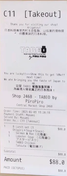 Located within the lively Central Market, Tabeo by Piro Piro is a delightful spot for quick, satisfying meals. One standout item is the pumpkin croquette, featuring a sweet and sticky filling enveloped in a perfectly fried, crispy crust. The balance of textures—crispy outside and soft inside—provides a truly satisfying experience without being greasy.In addition to the croquettes, Tabeo offers flavorful soups, diverse rice balls, and freshly made sandwiches, ensuring there's something for everyone. This combination of quality and convenience makes it an ideal choice for lunch in the Central area.…查看更多