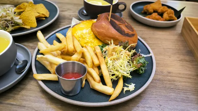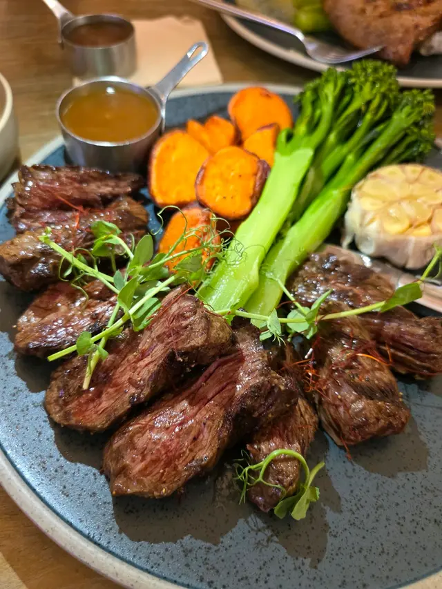 呢間餐廳成日都要排長龍等位,平日Lunch Time好難食得到,難得約左退休舊同事食lunch,梗係叫佢排定隊攞定位等我啦,不過由於限時70分鐘,真係要度啱時間先好入座。我們叫左兩份炭燒安格斯西冷牛扒配熱咖啡,手機落單,選項沒有「叫起」之類,所以如果杯咖啡未飲住,就要同侍應講聲杯咖啡遲啲先上。塊西冷好大塊,熟度適中,外層焦香,內有嚼勁😋,啲薯條亦好好味,仲配埋沙律菜,好滿足😊。如果唔想啲薯條腍哂,記得要「汁另上」。已經約好左舊同事下次再黎食。…查看更多