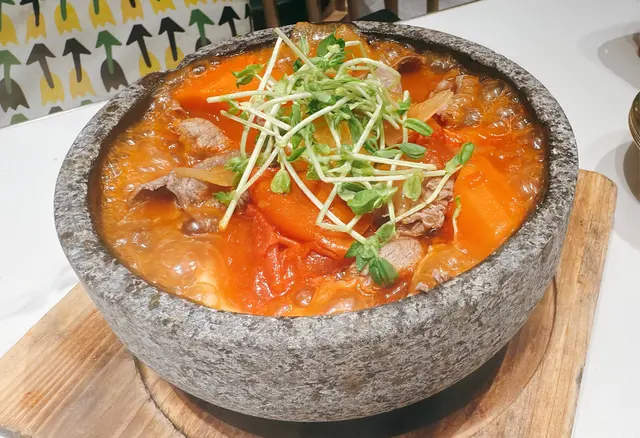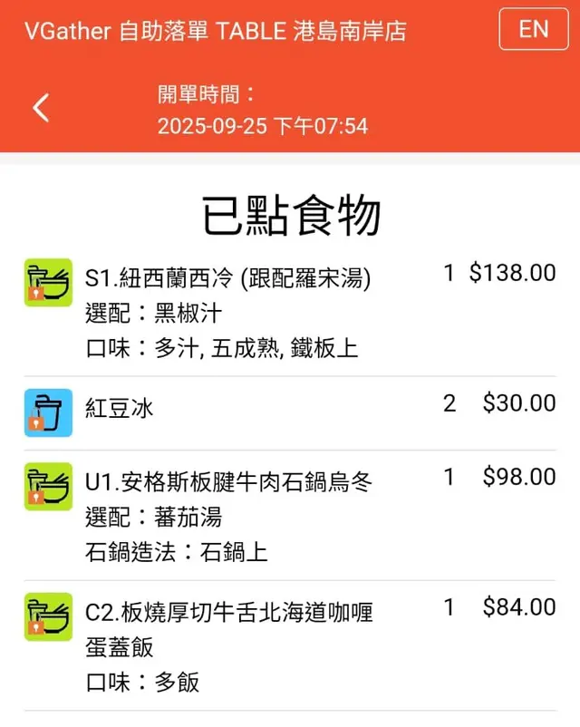 去完海洋公園有點該夜又餓,去黃竹坑Southside就最近,去到大概7:30都要等位,食完商場店鋪都關咗9成,好彩這餐唔錯啫😙紐西蘭西冷牛扒鐵板餐(黑椒汁)配羅宋湯$138。✨🫕羅宋湯: 熱餐飲杯上,羅宋湯味濃,湯料蔬菜滿滿,不過有啲酸,但大體上非常好飲。✨🍴紐西蘭牛扒: 我要求五成熟,但係真係熟咗啲,有點兒硬,不過配埋黑椒汁都幾好食,而且配餐蔬菜都好多種,仲有炸薯角😋✨🍴板燒厚切牛脷北海道咖喱蛋蓋飯$84: 牛脷厚厚的,但係好軟腍,一咬就開👍🏻;咖喱汁就唔夠香又唔辣,日本人口味有點甜😅;蛋就唔係好熟,勉強合格啦。✨🥢安格斯板腱牛肉石鍋烏冬$98: 成個石鍋上檯熱辣辣。蕃茄湯底好味;烏冬應該係讚岐烏冬,夠煙靭;可能放在石鍋裏便煮得太耐,有點兒熟😅,但總括來說好味的👍🏻✨🧋紅豆冰$15: 5:30後所有飲品半價,$15好抵飲,仲要紅豆🫘夠淋起沙😋✨3個人三百多,味道又唔錯又大份,性價比非常高,不過斟水要自己嚟,但門口有兩張檯可跟毛孩座,為毛孩家長多一個選擇👍🏻…查看更多