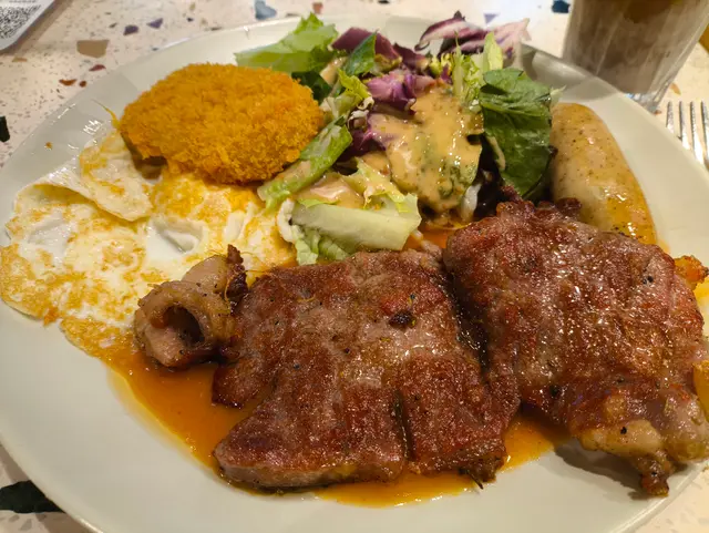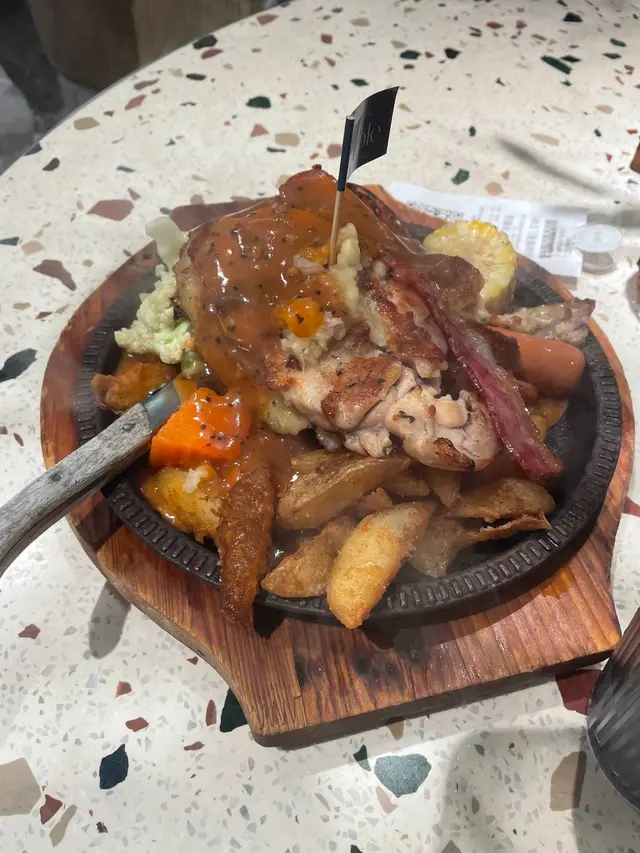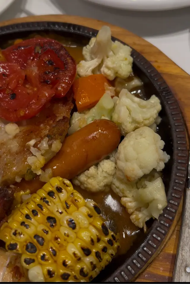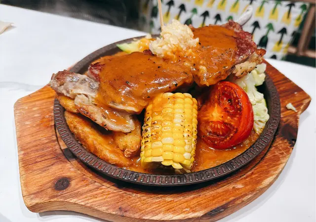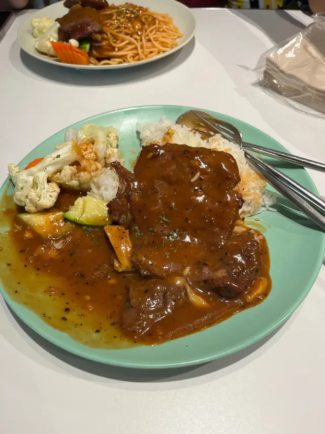 去完海洋公園有點該夜又餓,去黃竹坑Southside就最近,去到大概7:30都要等位,食完商場店鋪都關咗9成,好彩這餐唔錯啫😙紐西蘭西冷牛扒鐵板餐(黑椒汁)配羅宋湯$138。✨🫕羅宋湯: 熱餐飲杯上,羅宋湯味濃,湯料蔬菜滿滿,不過有啲酸,但大體上非常好飲。✨🍴紐西蘭牛扒: 我要求五成熟,但係真係熟咗啲,有點兒硬,不過配埋黑椒汁都幾好食,而且配餐蔬菜都好多種,仲有炸薯角😋✨🍴板燒厚切牛脷北海道咖喱蛋蓋飯$84: 牛脷厚厚的,但係好軟腍,一咬就開👍🏻;咖喱汁就唔夠香又唔辣,日本人口味有點甜😅;蛋就唔係好熟,勉強合格啦。✨🥢安格斯板腱牛肉石鍋烏冬$98: 成個石鍋上檯熱辣辣。蕃茄湯底好味;烏冬應該係讚岐烏冬,夠煙靭;可能放在石鍋裏便煮得太耐,有點兒熟😅,但總括來說好味的👍🏻✨🧋紅豆冰$15: 5:30後所有飲品半價,$15好抵飲,仲要紅豆🫘夠淋起沙😋✨3個人三百多,味道又唔錯又大份,性價比非常高,不過斟水要自己嚟,但門口有兩張檯可跟毛孩座,為毛孩家長多一個選擇👍🏻…查看更多