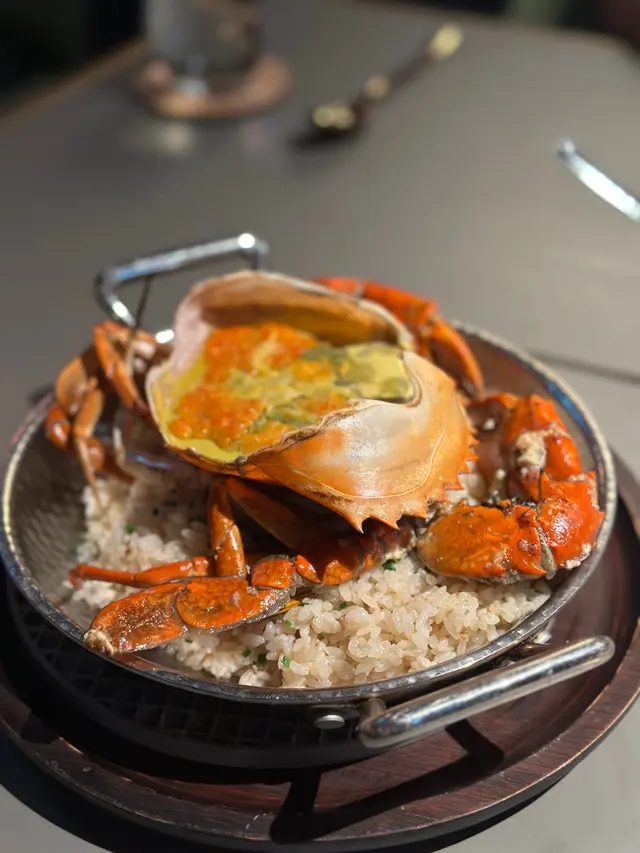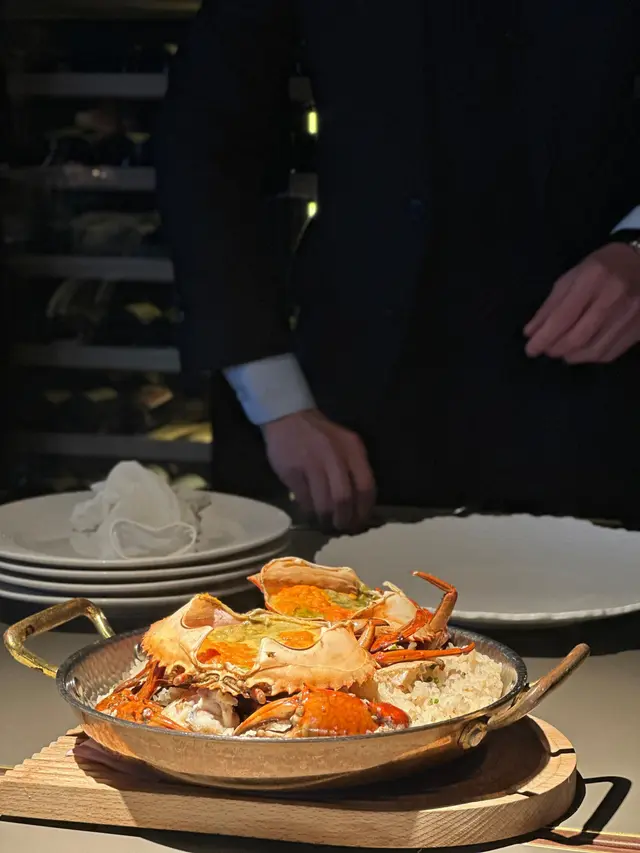 Just bad, not worth. No good surprises 去到環境好靚,好高級,開始對食物有啲期待我哋二人無叫set,只叫a la carte叫左四個前菜,一份US牛,同個signature mud crab garlic rice.前四道前菜,分別兩款北海道uni, 大龍蝦湯同花膠。賣相好靚,好高質,但味道一般,無驚喜。龍蝦湯層foam幾好味,湯亦好濃。鍾意飲龍蝦湯嘅人會好鍾意,但我覺得鹹。兩款uni, 除咗食材值錢,其他無咩出色。花膠,份量比我預期多,但花膠同啲sauce唔係特別夾,花膠又吸唔到啲sauce變左花膠無味,食落又唔膠…之後到份牛,本身想叫韓牛,點知是日無,咁唯有叫美國牛。又係賣相好得,好有gimmick, 放係塊喜馬拉雅鹽板上,但唔知係啦啦配個韓系配菜做咩,講返主角個牛,煮得好靚,生熟拿捏得好好,但食落又係無料到…😮💨 絕對唔值$700最後上個signature garlic rice, 半份有一隻蟹,賣相正常,食落無味,連嗅覺都享受唔到既garlic rice. 真係O左嘴。仲要當場自己剝蟹殼食,係一個咁高級嘅地方自己剝蟹殼,係幾咁刻突嘅事,即刻覺得自己去左大排檔,食完成隻碟都係蟹殼。同場加影,有張枱講嘢好大聲,特別個女人,唔知以為佢飲醉左,搞到個場cheap曬🤦🏻♀️…Read More