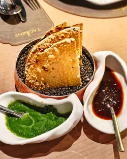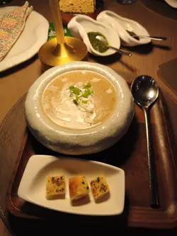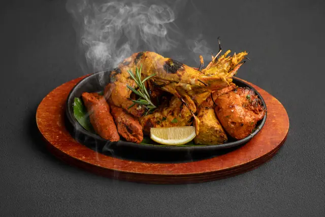 尖沙咀🚇帝國中心嘅 Tagline 主打融合 Awadhi 同 Mughlai 兩大印度宮廷菜系🤴,呢兩種菜系源自蒙兀兒帝國時期✨,當年嘅皇室貴族對飲食極之講究🍽️,鍾意用香料、乾果同慢煮方式🔥,令每一道菜都散發出濃郁嘅異國風情🌍。門口仲有一個巨型面像裝飾😲,好適合打卡📸!餐廳位於尖東海濱附近🌊,鄰近維港景致🏙️,仲有戶外露天座位☀️,可以一邊嘆美食一邊欣賞靚景🌅,氣氛一流!餐廳環境佈置充滿印度宮廷特色🕌,現代化嘅裝潢加上 LED 燈牆隨住強勁音樂節拍閃爍💡,營造出高貴典雅又充滿活力嘅用餐氛圍🎶。一坐低店員會先奉上餐前🫓脆餅Papadum,薄如紙咁香脆,會配上🌱薄荷青醬同羅望子酸甜醬,🤤清新又醒胃。首先嚟到前菜💫,Masala Papad 印度馬薩拉薄餅絕對係開胃之選!🫓香脆嘅炸薄餅配上滿滿新鮮洋蔥同番茄🍅,中辣程度啱啱好,酸酸甜甜又帶點辣味🌶️,一啖咬落去口感豐富,好開胃又爽脆😋!Lucknowi Lamb Tunde ke Kebab 印度皇家風味羊肉串🍖係源自蒙兀兒帝國年代嘅招牌菜!呢款羊肉餅入口即溶,肉質嫩滑多汁😍,香料味濃郁馥郁🌿,完全冇羊羶味🐐,每一啖都充滿層次感✨!Old Delhi 24K Butter Chicken 24K金牛油咖喱雞🐔更加係必試之選💛!無骨雞肉浸喺香滑濃郁嘅番茄咖喱醬汁入面🍛,店員會喺上枱時即場淋上金色牛油🧈,令成個醬汁更加幼滑香濃🤤,甜中帶少少辣味🔥,配埋烤餅一齊食簡直係完美配搭👌!金箔點綴令個賣相更加華麗高貴✨,食落更有皇家風範👑!Garlic Naan 蒜香烤餅🫓係用特製嘅泥爐烘烤🔥,餅身鬆軟充滿蒜蓉香氣🧄,外層略帶金黃色🌟,用嚟蘸咖喱醬汁食就最正👍,每一啖都帶住暖笠笠嘅餅香🥰!最後唔少得甜品收尾🍰,Sizzling Brownie 鐵板朱古力布朗尼🧁放喺熱騰騰嘅鐵板上端上枱,仲會即場🔥點火,儀式感十足啱曬打卡!配上雪糕🍨形成冷熱對比❄️,布朗尼香濃軟糯🍫,配上雪糕清爽嘅口感🍦,令成個甜品更加豐富有層次😍!Tagline 嘅每一道菜都充滿驚喜💫,由前菜到甜品都精心製作💪,絕對係尖沙咀區品嚐正宗印度菜嘅好選擇👏!…查看更多
