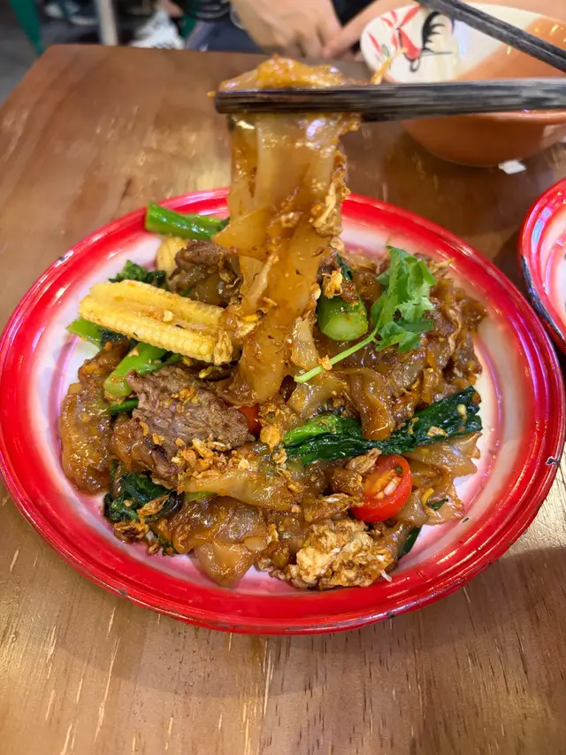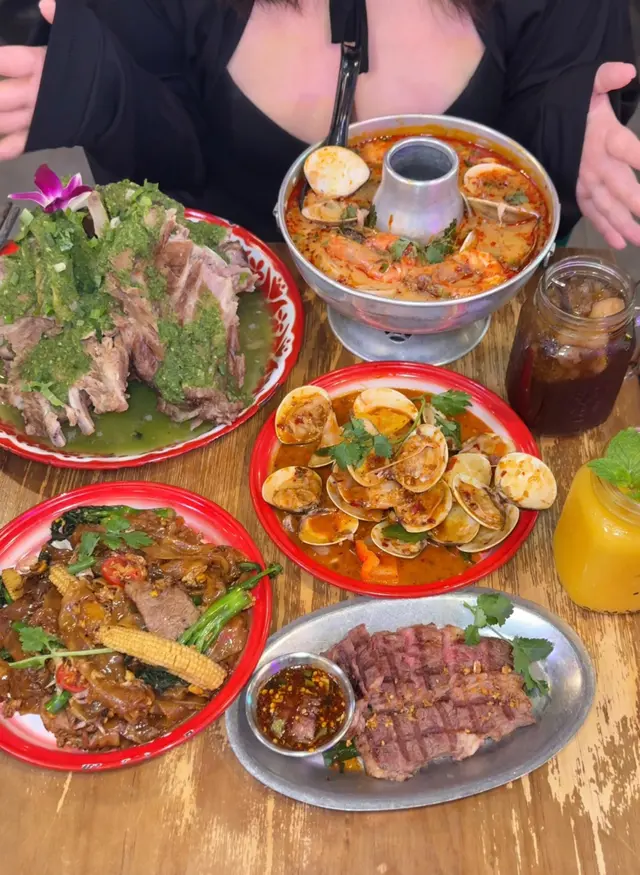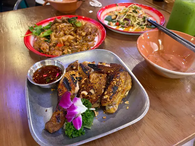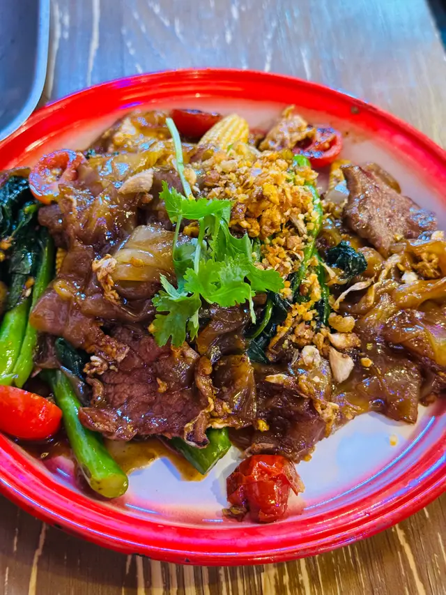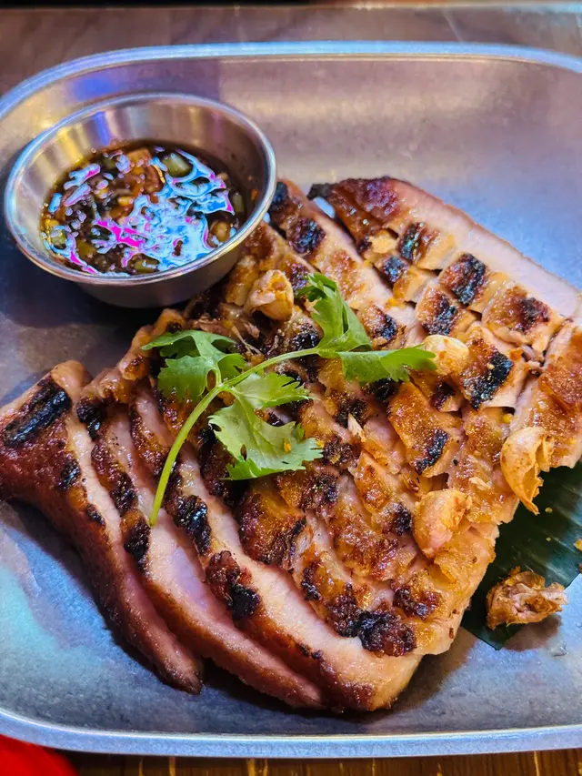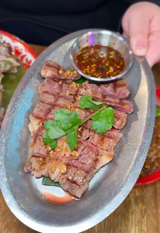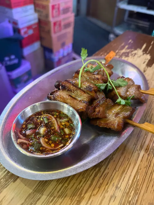 「Tamarind」環境設計以泰國街頭風格為主,牆上街頭塗鴉作為裝飾,另外仲有以篤篤車設計的卡位雅座,恍如置身於泰國街頭一樣😚😚週末午市人流超多,想食好東西的話就唔好介意要排隊🤭🤭我哋叫咗兩款主食同埋一個小食一齊分享,每一款都相當有驚喜,尤其係比較少見嘅泰北咖喱雞金麵😆🐮泰式牛肉船麵船麵湯底以牛骨熬製,湯頭濃郁不膩,牛肉片薄嫩入味,仲有爽口彈牙爆汁嘅牛丸同大量揸到脆卜卜嘅豬皮,麵底配以豆芽脆爽與香菜清新,熱騰騰入口,層次豐富🍲,口味純正,真係好似喺置身於泰國一樣❤️🐔泰北咖喱雞金麵金黃麵條吸滿咖喱汁,原隻咖喱雞髀🍗軟嫩juicy,咖喱帶點微辣,但飲落唔會嗆喉,配青酸菜同埋生紅蔥一齊食別有風味🥰🐷沙嗲豬串燒沙嗲串燒可以揀豬肉或者雞肉,一客有三串可以當做小拼盤分享😍豬肉用秘製醬料醃製後腱炭烤,焦香邊緣juicy彈牙,沾自家製秘製辣椒豉油,辛辣口味當惹味👍🏻👍🏻見到隔籬枱嘅雞肉串燒賣相亦都相當唔錯,下次再一定試一試💯飲品方面亦都有唔少選擇,🥥鮮椰青解渴首選,椰青水清甜涼爽,椰肉嫩滑可刮,亦有辣之效😋另一款芒果沙冰更為驚喜,以新鮮芒果🥭果肉打成沙冰,當季芒果甜得很,夏日消暑必點🤗🤗…查看更多
