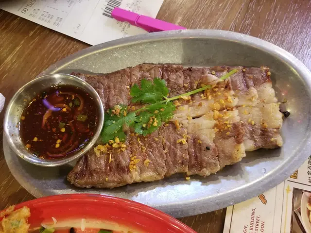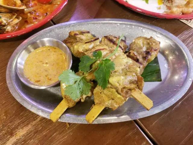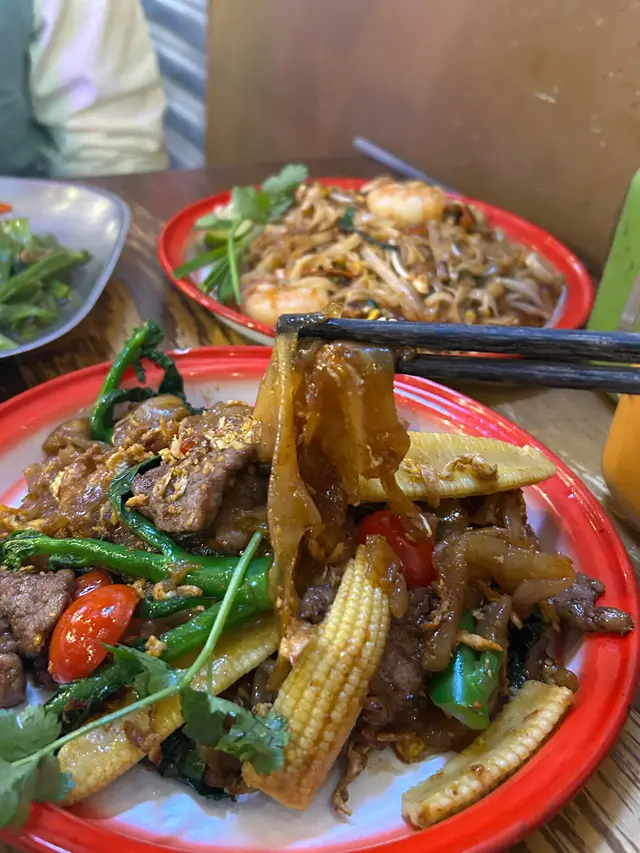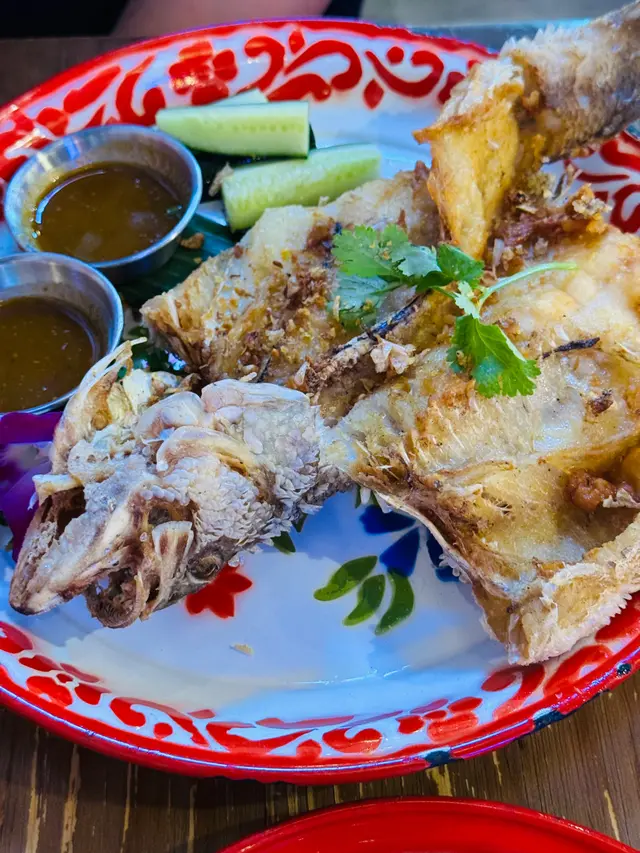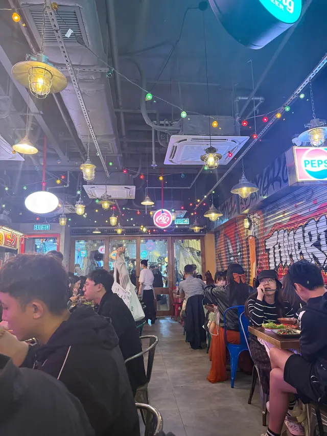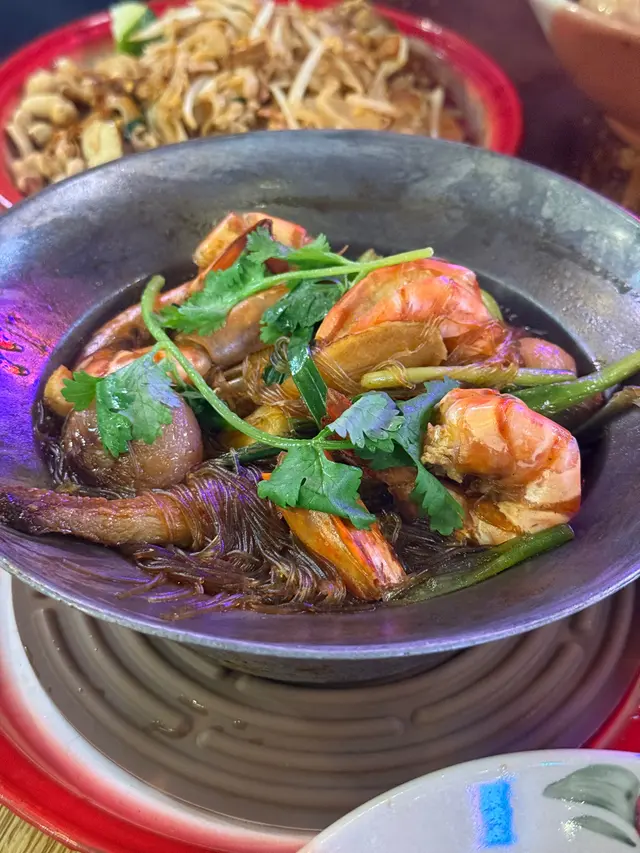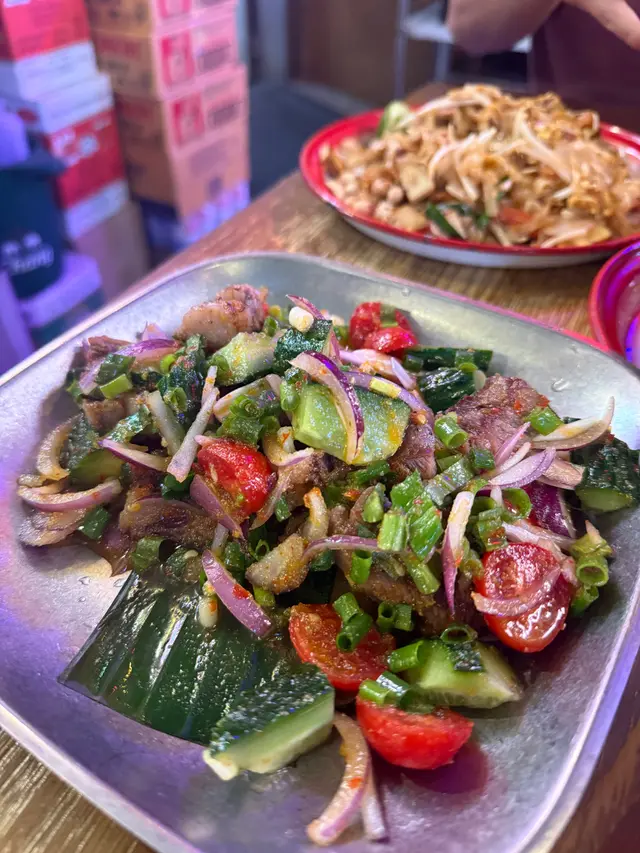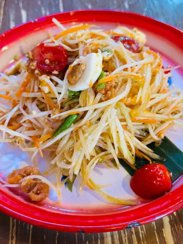 「Tamarind」環境設計以泰國街頭風格為主,牆上街頭塗鴉作為裝飾,另外仲有以篤篤車設計的卡位雅座,恍如置身於泰國街頭一樣😚😚週末午市人流超多,想食好東西的話就唔好介意要排隊🤭🤭我哋叫咗兩款主食同埋一個小食一齊分享,每一款都相當有驚喜,尤其係比較少見嘅泰北咖喱雞金麵😆🐮泰式牛肉船麵船麵湯底以牛骨熬製,湯頭濃郁不膩,牛肉片薄嫩入味,仲有爽口彈牙爆汁嘅牛丸同大量揸到脆卜卜嘅豬皮,麵底配以豆芽脆爽與香菜清新,熱騰騰入口,層次豐富🍲,口味純正,真係好似喺置身於泰國一樣❤️🐔泰北咖喱雞金麵金黃麵條吸滿咖喱汁,原隻咖喱雞髀🍗軟嫩juicy,咖喱帶點微辣,但飲落唔會嗆喉,配青酸菜同埋生紅蔥一齊食別有風味🥰🐷沙嗲豬串燒沙嗲串燒可以揀豬肉或者雞肉,一客有三串可以當做小拼盤分享😍豬肉用秘製醬料醃製後腱炭烤,焦香邊緣juicy彈牙,沾自家製秘製辣椒豉油,辛辣口味當惹味👍🏻👍🏻見到隔籬枱嘅雞肉串燒賣相亦都相當唔錯,下次再一定試一試💯飲品方面亦都有唔少選擇,🥥鮮椰青解渴首選,椰青水清甜涼爽,椰肉嫩滑可刮,亦有辣之效😋另一款芒果沙冰更為驚喜,以新鮮芒果🥭果肉打成沙冰,當季芒果甜得很,夏日消暑必點🤗🤗…查看更多