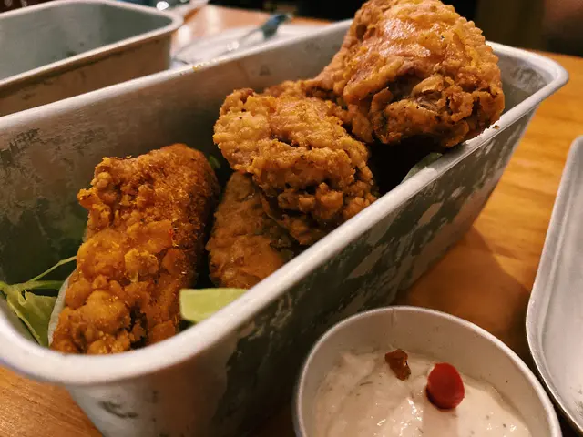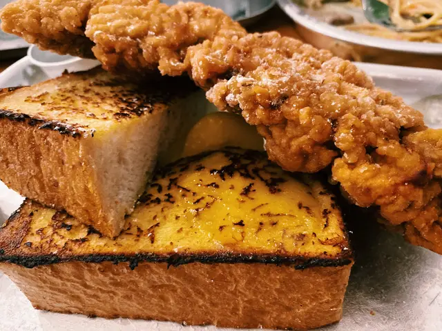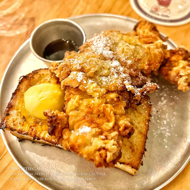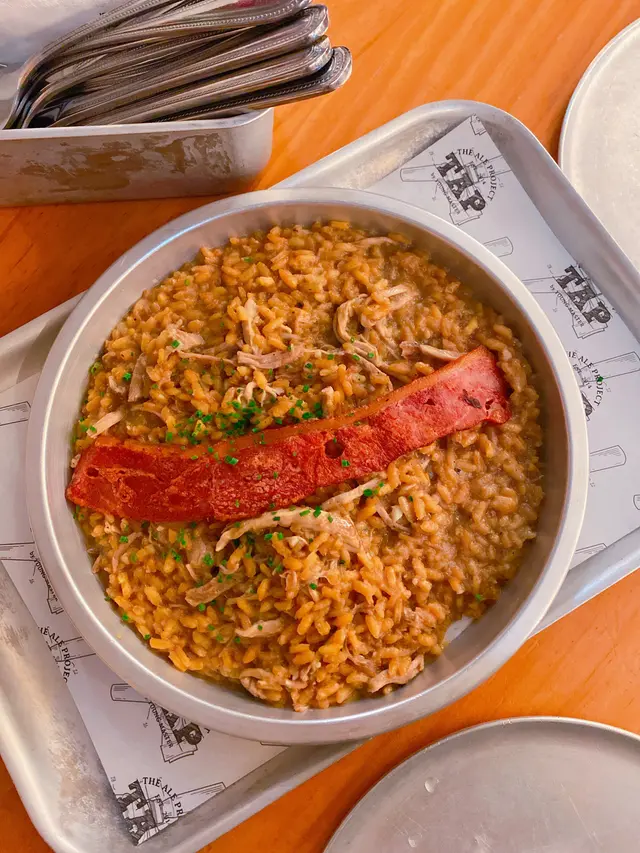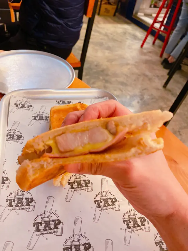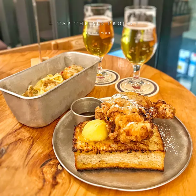 🔴之前都已經食過嘅TAP the ale project🍺位於南豐紗廠🏭主打手工啤🍺真係有超多款式任你揀🤣見到好多人都飲完一杯又一杯🤣食物款式全部都幾特別👍🏻不過就未好食到一試難忘🤣🟠toasted gai 吐司雞好大舊炸雞🐔炸到勁脆然後仲有牛油配吐司🧈🍞另外又糖漿俾你點✨咸咸甜甜幾過癮😂🟡jiu yim po boy 椒鹽浦BOY係椒鹽炸蝦幾特別🦐個醬都幾惹味🤣配埋法包幾夾不過成件事好熱氣🔥🟢the beauty 美心蒜牛意已經係第二次食😂蒜味重嘅牛肉意粉配埋面頭嘅蘿蔔絲😗其實冇乜特別不過蒜頭fans可以一試😂…查看更多