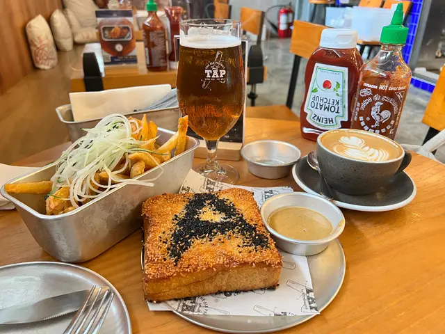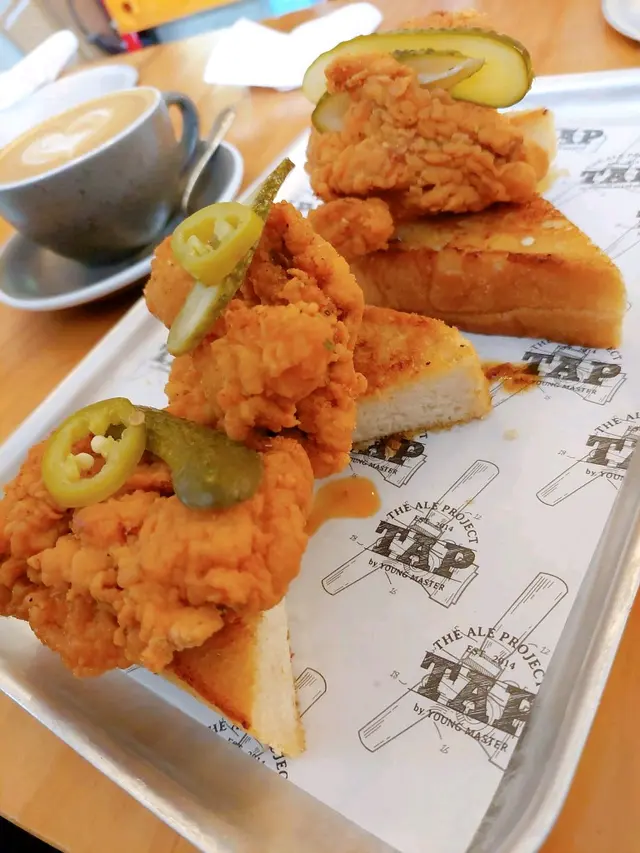 🐔吐司雞💰$88 (全份)😈南豐紗廠大家都唔陌生💛呢到係主打文青鋪頭同好多輕咖啡小店今日就試呢間TAP The Ale Project🤤呢到就係主打飲啲手工啤酒同黑啤既主打就唔算話太多😬不過就好多送酒野食🍺呢個吐司雞我想試好耐今次有4個人都可以叫全份佢個吐司係甜甜地好似韓式個隻咁表面都煎到好香脆🍗而佢中間有個圓圓地既球體就係超級邪惡既牛油🧈我地將啲牛油搽上吐司到再加個雞好好食可能又熱辣辣同埋雞肉唔會好鞋🤔不過真係好邪惡🐖馬來西亞肉骨飯💰$88😈佢主食唔算話好多種類不過呢個都幾Fusion既感覺就試下💛聽上去馬來西亞肉骨飯好似有啲奇奇怪怪咁但係食落又驚喜🤤佢個飯好似Risotto咁個飯濕濕地同埋真係好香肉骨茶個個味😳我覺得幾濃味同埋我都偏重口味所以我覺得Mix埋好好味仲有啲肉都好入味🐏羊奶杏鮑飯💰$158😈反而呢個羊奶杏鮑飯就麻麻地😣佢一上枱就凍哂搞到個飯凍左同變左一Pat野😢不過佢個羊奶味唔算話好重口味杏鮑都吸左味但係凍左就真係有少少影響左成個口感🐔炸卡津雞翼配腐乳醬💰$78😈我又幾鍾意呢個炸卡津雞翼配腐乳醬🤤佢個雞翼好大隻同埋我幾鍾意佢個炸粉又唔會太厚或太薄😬好似落左少少辣粉所以食落辣辣地而佢個醬係腐乳醬食落又唔會覺得好奇怪而覺得幾夾個雞翼😍所以呢個都係我每次必叫🍟紅蕃孖寶💰68😈呢個薯條送酒真係一流😬留意返佢唔係前普通薯條或蕃薯條咁簡單😂佢係紅菜頭加蕃薯條🍟平時真係好少食到紅菜頭既小食同埋佢都係炸到脆一脆之後落左好多辣粉同調味粉🤤會越食越上癮同埋呢杯好多手工酒都唔錯呢到仲有啲Boardgame提供俾大家同朋友仔一邊飲酒一邊玩 …查看更多