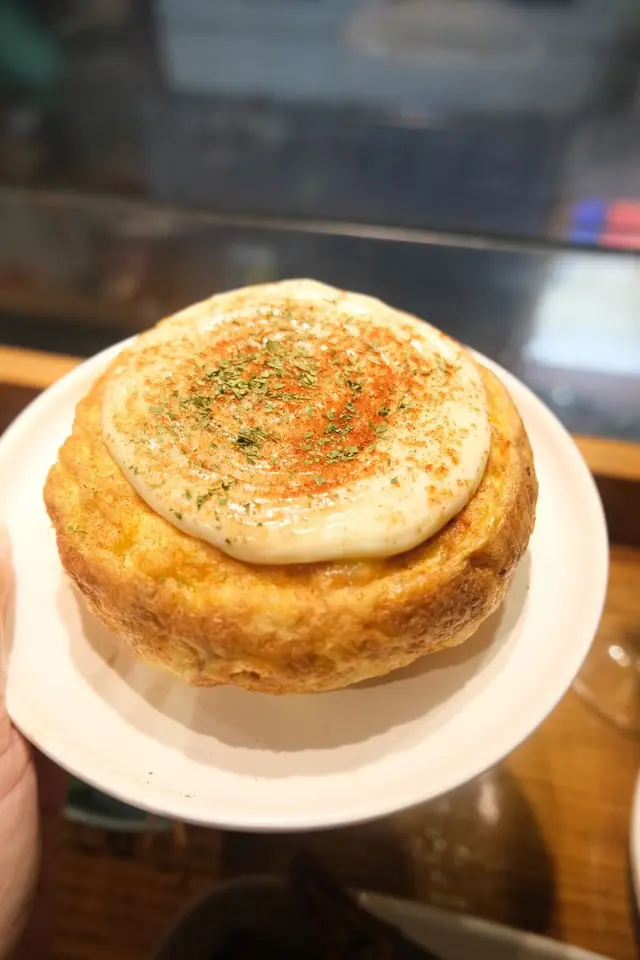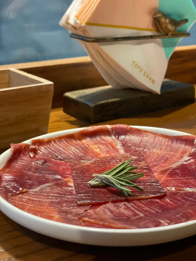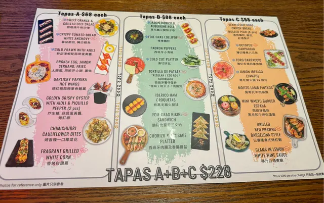 門口燈飾超級靚,好適合打卡📸,裏面既燈飾都幾過癮,我和朋友坐咗係近窗邊既Bar檯,望住樓下風景都幾Chill🤟🏻。✨西班牙慢烤乳豬番茄鍋飯($298)慢烤乳豬外皮薄又脆🐽,肉嫩充滿油香味,番茄鍋飯,飯香亁身有番茄汁味而且不酸。✨薄切慢煮八爪魚($88)慢煮八爪魚很新鮮口感超軟,中間橙色的醬汁酸酸的很開胃,作為前菜很棒😋。✨凍切拼盤($88)拼盤有西班牙火腿、曼徹格芝士、紅酒燴梨,西班牙火腿鹹而薄很有風味,曼徹格芝士味道很濃很適合配酒,最後來一口紅酒燴梨中和鹹味。✨鵝肝比堅尼三文治($78)比堅尼三文治烤得很香脆,配上鵝肝做餡超級棒,咬下去會一口接著一口,停不了。✨巴塞隆拿式烤紅蝦($98)是我吃過最好吃的蝦子🤩,巴塞隆拿式的做法太好吃了,味道很油香蝦肉很Q彈,徹底愛上這道菜!✨Red Sangria($48)蘋果味道作為基底的酒🍎,還放了一點蘋果肉在裡面,喝著很順口不太酸。✨White Sangria($48)橙子味道作為基底的酒🍊,喝著很順口開胃。…查看更多
