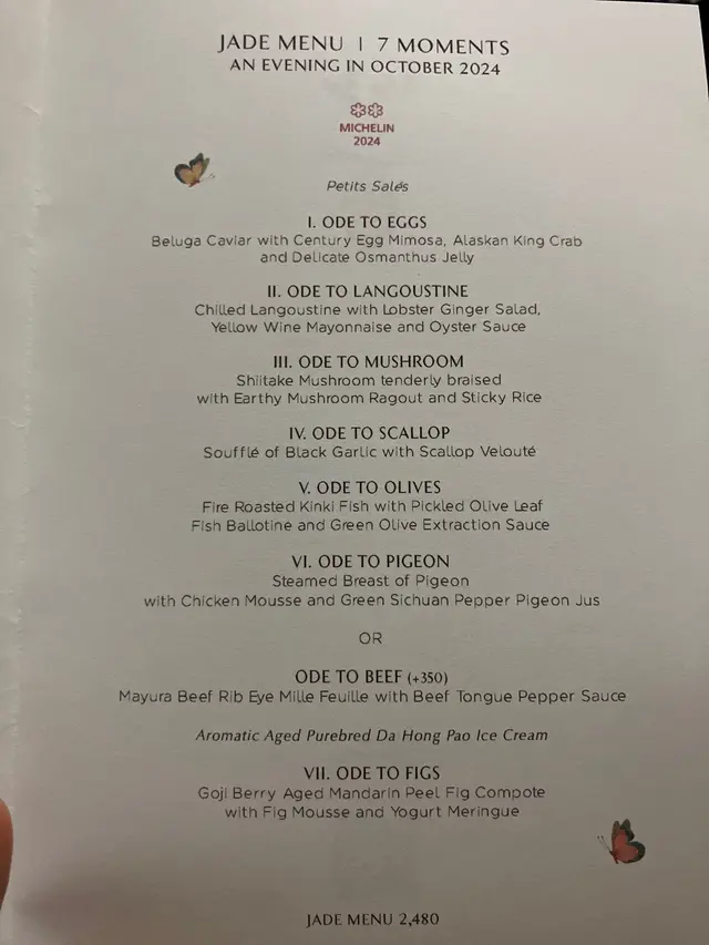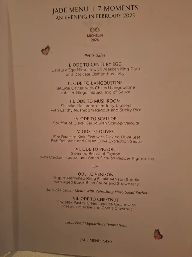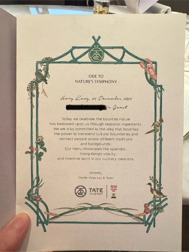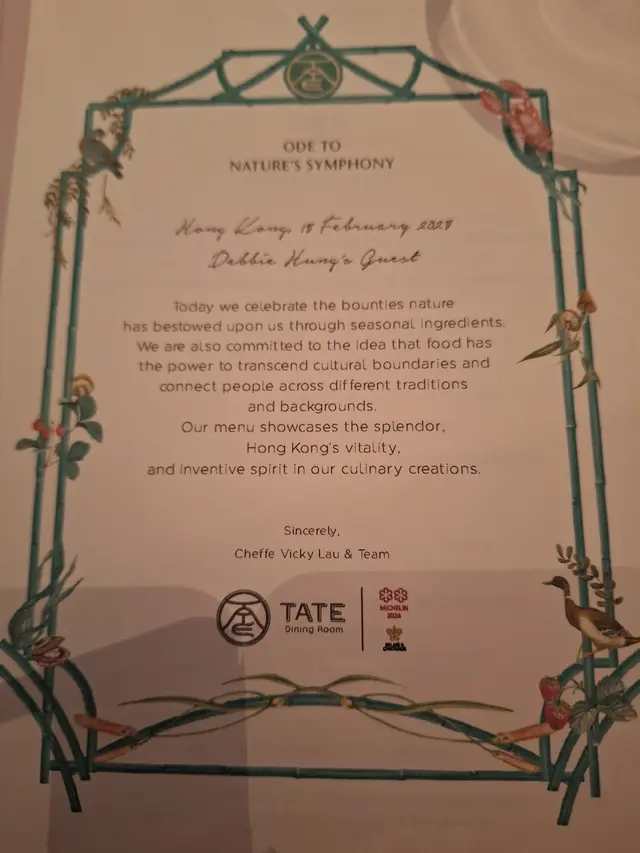 有人為摘星而來, 我為重溫那場白蓮花綻放的儀式回來,是來自米芝蓮三星的優雅🌟若問為何三訪 Tate the Dining Room?答案藏在那輛 「會開花的梳妝檯」,鍍金櫃門輕啟,一遍荷塘月色,睡蓮花芯的棒棒糖;巧克力石春。再來一盞白蓮茱儀式 ,滾水傾注,白蓮在玻璃碗中甦醒,茶霧彌漫,托起一室清雅。前菜amuse-bouche 用「玻璃扇面」盛著三闕精巧小點!已經沉淪!▫️ODE TO CENTURY EGG皮蛋慕斯配蟹肉,細緻的米醋果凍如琥珀。一個極致的開胃菜! ▫️ODE TO ASPARAGUS白蘆筍乳酪搭配烤綠蘆筍,雲南火腿和魚子醬,再加上白酒醬汁的點綴,都是春天的味道▫️ ODE TO MUSHROOM慢煮香菇搭配土菇燉菜和糯米,再配上罕見的雲南樹上花和紅木耳,每一口都充滿大自然的馨香。獨家調制的香菇茶更是讓這道菜的層次更加分明▫️ODE TO SCALLOP扇貝豆腐藏在翠綠的西葫蘆花中,搭配鮑魚、扇貝、龍蝦和香滑的椰子扇貝醬,如同一朵綻放的花朵▫️ ODE TO GROUPA炭烤斑點藍石斑搭配法式魚湯,魚肉鮮嫩,湯汁濃郁▫️ODE TO LAMB羊架搭配柑橘羊肉汁和蒙古韭花醬,番茄雪葩是味蕾的休止符 !羊脊肉造成羊肉餃子!一肉兩吃▫️ODE TO SAKURA櫻花蛋白霜裹住荔枝慕斯,樹莓雪葩咬碎春日的酸,是春日的甜…查看更多