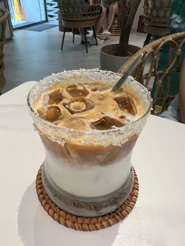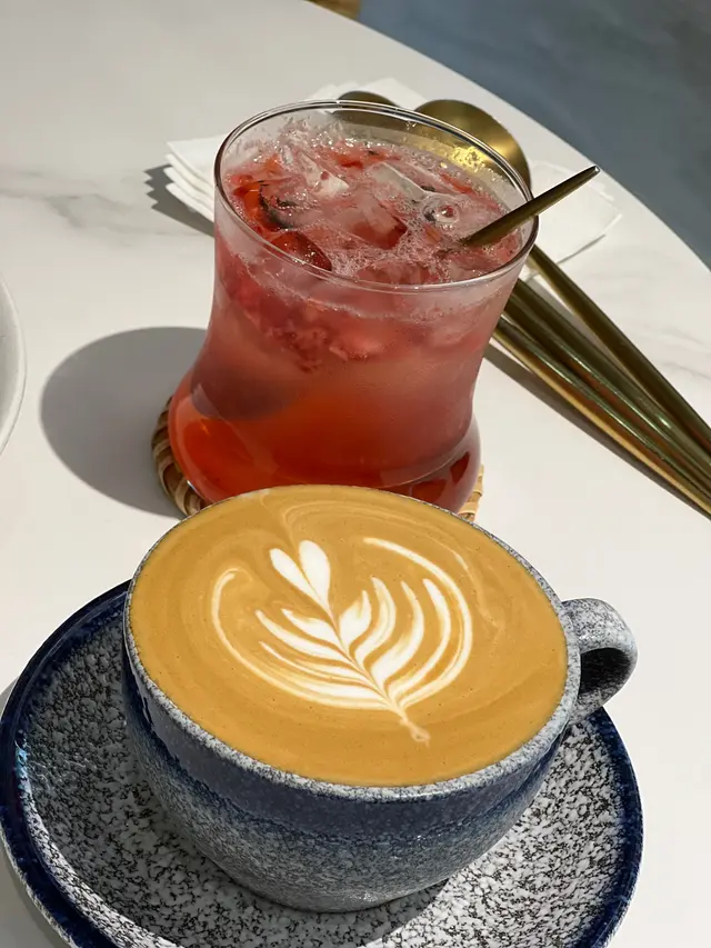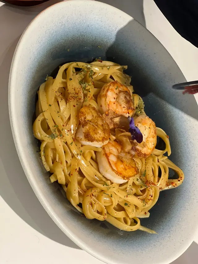 早幾個禮拜嘅公眾假期,去咗呢間喺內街嘅Cafe,lunch time去到都接近坐到滿晒!店內主要以藤籃做主題,好多植物同埋牆上好有日落沙灘🏝️嘅感覺,好有東南度假風🤗🍝香草醬慢煮雞胸蝴蝶粉 ($108)雞胸慢煮之後肉質幾滑唔鞋口😆蝴蝶粉嘅熟度啱啱好,意粉幾有嚼口👍🏻香草醬仲配左啲松子食落更有口感,pesto嚟講整體幾唔錯👍🏻🍤娘惹喇沙虎蝦扁意粉 ($138)喇沙比想像中辣同後勁強,但好惹味! ☺️扁意粉掛汁!虎蝦頗大隻🍤🍦海鹽脆脆牛角包窩夫配泰式奶茶雪糕奶茶雪糕一影完相就冧咗落嚟🤣 croffle熱辣辣而且幾鬆脆,同泰奶雪糕幾夾😍🍫75%朱古力咖啡($58)好濃郁嘅mocha,鐘意dark chocolate嘅話一流,唔會太甜又夠濃😌…查看更多