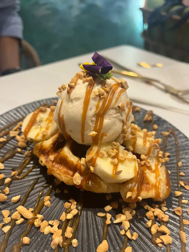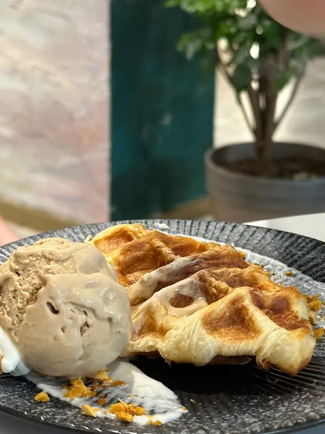 海鹽脆脆牛角包窩夫配泰式奶茶雪糕