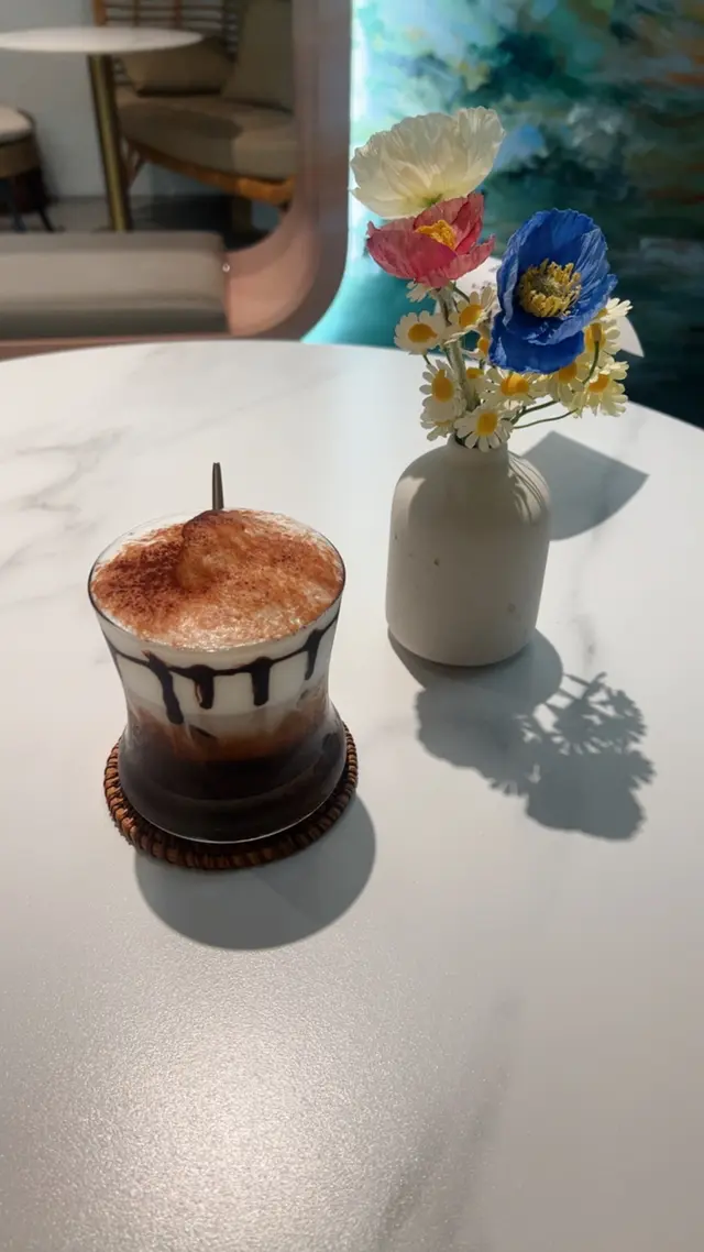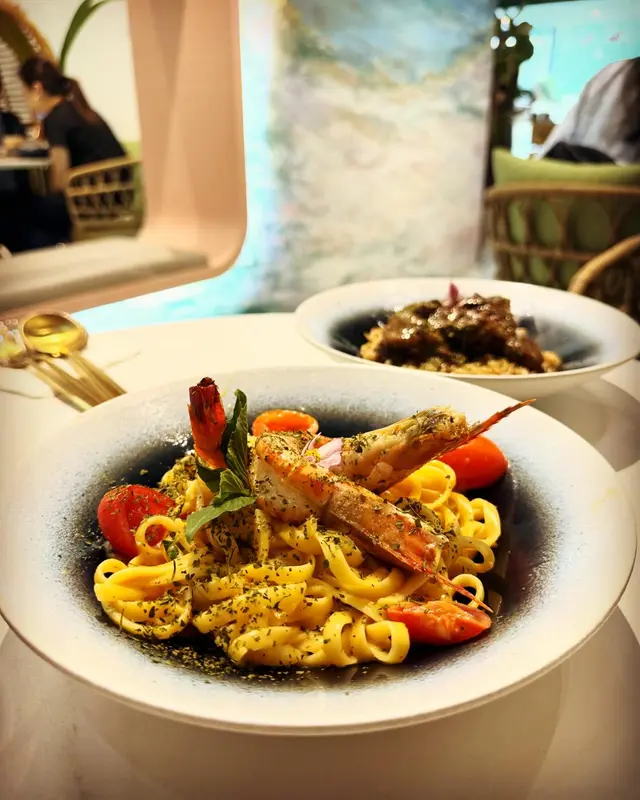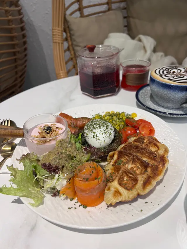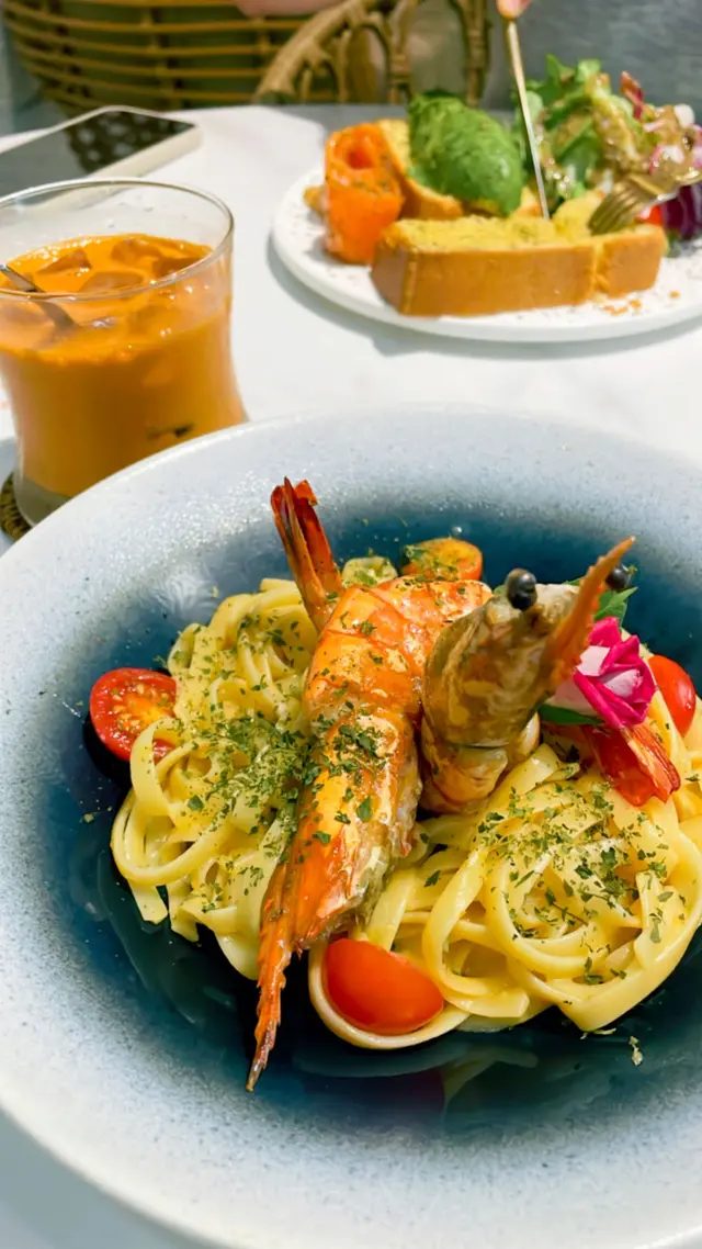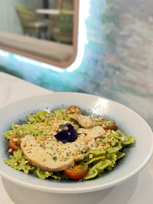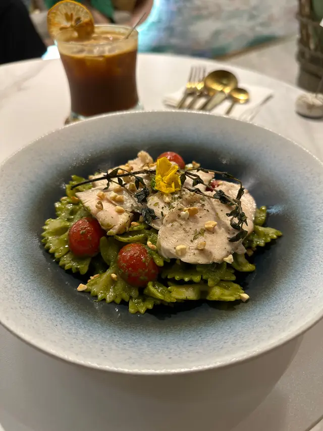 早幾個禮拜嘅公眾假期,去咗呢間喺內街嘅Cafe,lunch time去到都接近坐到滿晒!店內主要以藤籃做主題,好多植物同埋牆上好有日落沙灘🏝️嘅感覺,好有東南度假風🤗🍝香草醬慢煮雞胸蝴蝶粉 ($108)雞胸慢煮之後肉質幾滑唔鞋口😆蝴蝶粉嘅熟度啱啱好,意粉幾有嚼口👍🏻香草醬仲配左啲松子食落更有口感,pesto嚟講整體幾唔錯👍🏻🍤娘惹喇沙虎蝦扁意粉 ($138)喇沙比想像中辣同後勁強,但好惹味! ☺️扁意粉掛汁!虎蝦頗大隻🍤🍦海鹽脆脆牛角包窩夫配泰式奶茶雪糕奶茶雪糕一影完相就冧咗落嚟🤣 croffle熱辣辣而且幾鬆脆,同泰奶雪糕幾夾😍🍫75%朱古力咖啡($58)好濃郁嘅mocha,鐘意dark chocolate嘅話一流,唔會太甜又夠濃😌…查看更多
