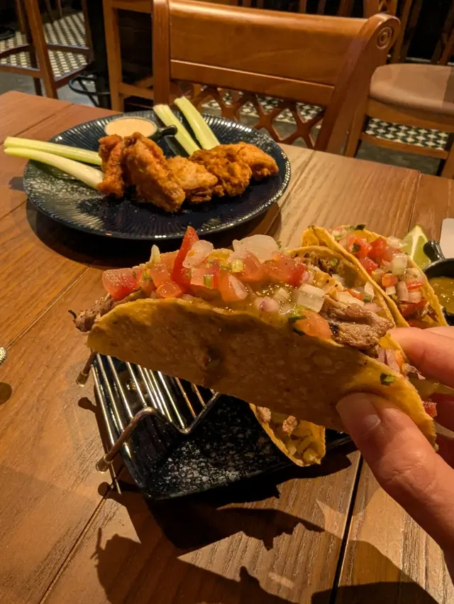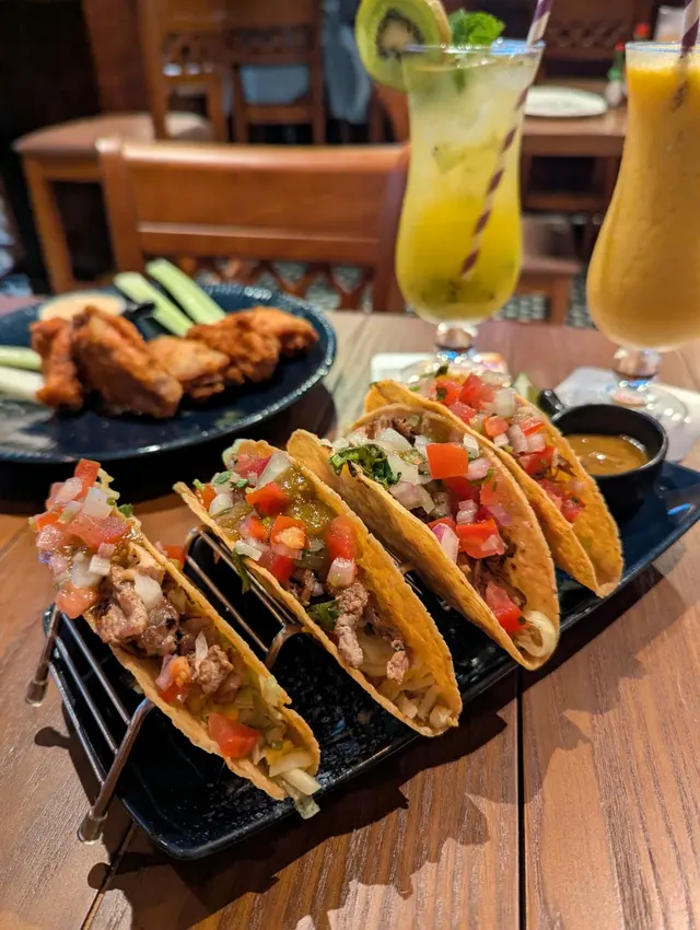 今日約埋朋友黎左Tequila Mex食午餐真係好開心!呢間餐廳環境超有墨西哥🇲🇽風情,色彩鮮艷,令人好有食慾,無論午餐晚餐happy hour 都好岩。試咗佢哋嘅Nuevo Combo Tacos,選咗豬肉同牛肉。每一啖都好美味,豬肉嫩滑,牛肉又好香,加上啲香料,味道真係一流!仲有Buffalo Chicken Wings,外面脆脆,裡面嫩嫩,特製辣醬更加提升咗口感,真係食完想再嚟多幾隻。飲品方面,我試過Berries Paradise同Mango Smoothie,兩款都好清新,特別係炎熱嘅下午,飲落真係好舒服。Berries Paradise酸酸甜甜,Mango Smoothie就好似嚐到夏天嘅陽光。總括來講,Tequila Mex唔單止食物好味,環境又靚,真係值得再黎!…查看更多