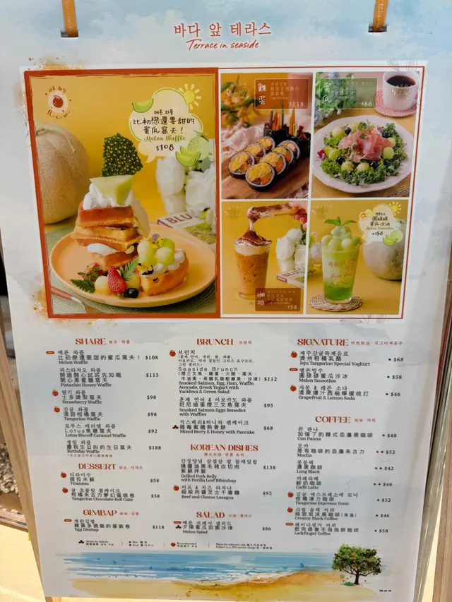 三姊妹帶同姨甥女在九龍灣德福廣場晚飯,不想食得太heavy,就選了在Terrace in seaside晚飯。曾光顧尖沙咀海運大廈分店,覺得食物及飲品都平平無奇,而最近在沙田新城市分店吃過窩夫就覺得不錯。德福廣場分店的室內座位不多,部分座位是設在商場走道旁的開放式座位。6:30pm左右來吃晚餐時未有其他顧客,可坐到室內座位,冷氣涼快一點。超級肉醬芝士千層麵是店舖推介菜式之一,千層麵的面層鋪上焗得融化的芝士,還有半熟蛋,中間夾著滿滿的茄汁肉醬與芝士,味道香濃。將半熟蛋戳破,蛋汁沾滿千層麵,更為滋味,小朋友也喜歡吃。明太子蟹肉飯卷,韓式飯卷的面層加上少量蟹肉,並加上明太子沙律醬,惟明太子醬的味道並不突出,不過不失的一款飯卷。燒醬油黑毛豬白切肉紫蘇拌飯,其實我們三姊妹都不喜歡紫蘇的味道,但飯類的選擇兩款都是紫蘇拌飯,而又不想再多點一份千層麵,所以個人認為主食選擇太少。幸好這道拌飯的紫蘇味不算太強烈,尚能入口,擠點橙汁於飯中,更能減輕紫蘇味,好吃一點。醬油黑毛豬白切肉的肥瘦均勻,不會入口就滿咀肥油,豬肉入味,軟稔度適中。士多啤梨窩夫焗得稍為焦了一點,窩夫🧇的蛋香味足,而且都夠脆。士多啤梨🍓不夠香甜,是款普普通通的窩夫。帶點驚喜的香印提子奶蓋綠茶,雖然奶蓋只有薄薄的一層,但綠茶有茶香,不會好淡,而且提子夠香甜。濟州柑橋乳酪,整杯飲品充滿淡淡橙香味,乳酪質感輕盈不膩滯。這頓晚飯以兩杯飲品較為出色,但價錢偏貴。整體的價格,可以嚐到更好吃的菜式。…查看更多