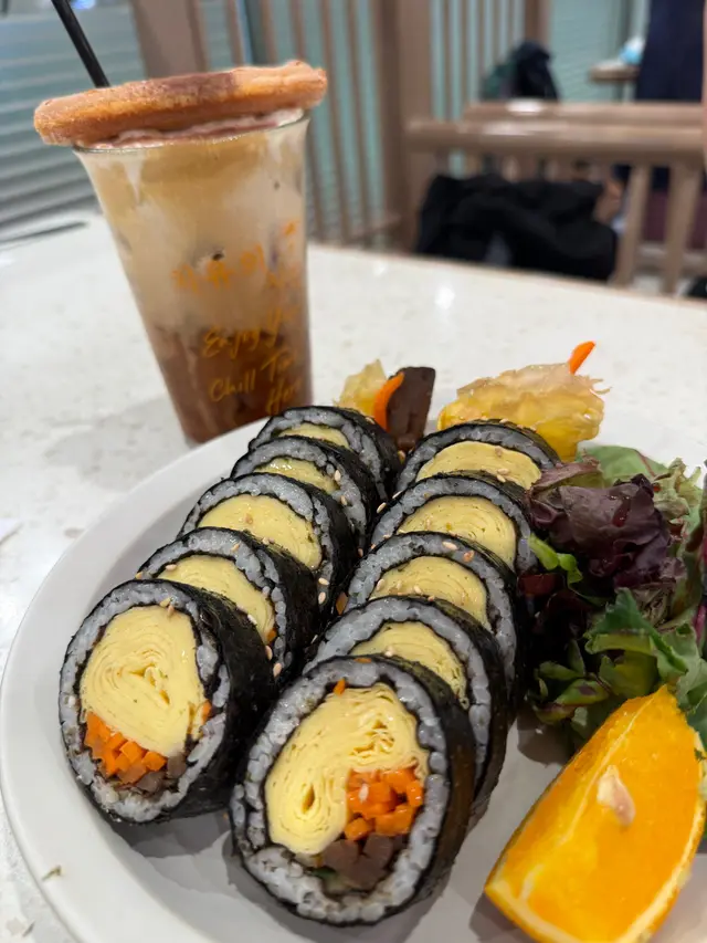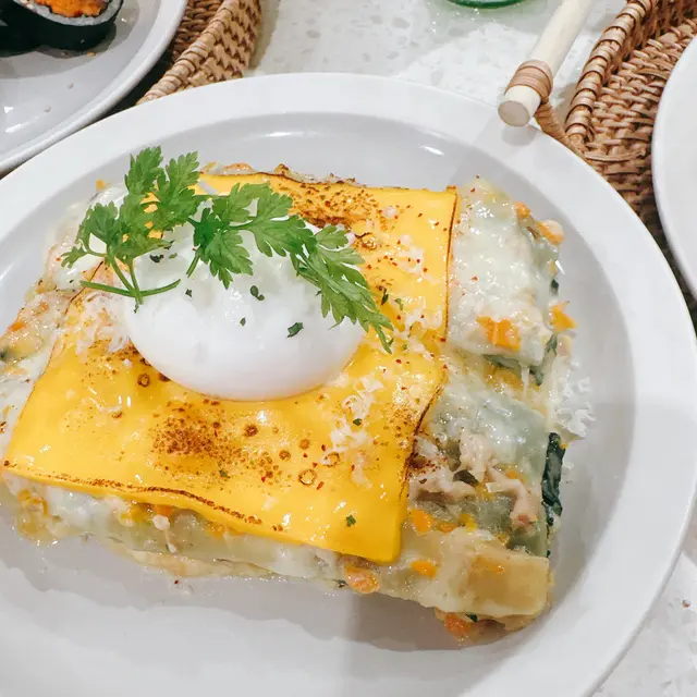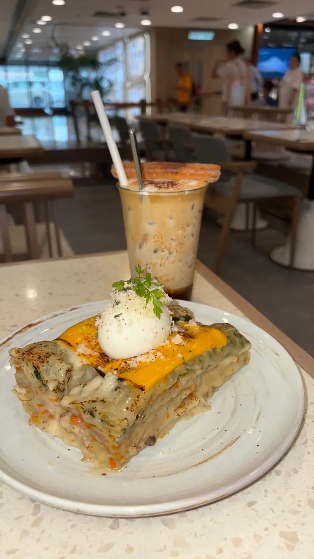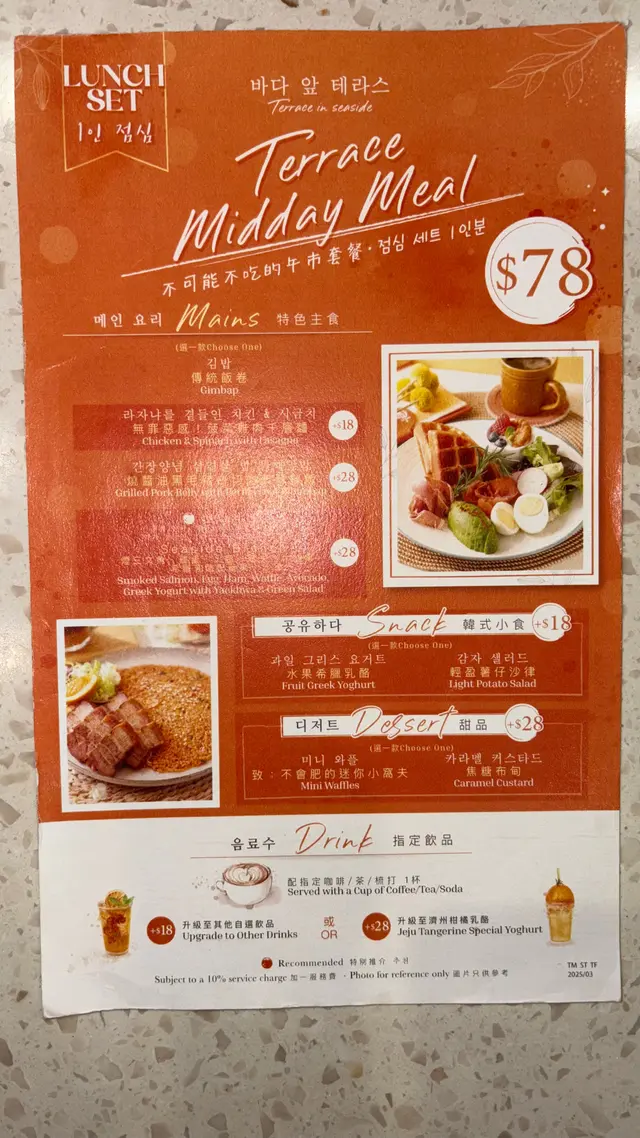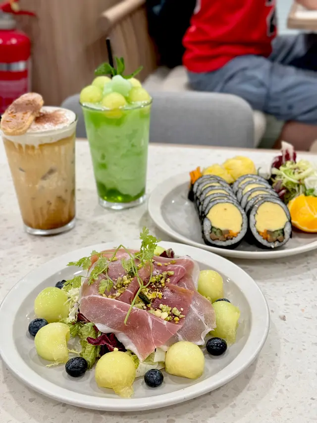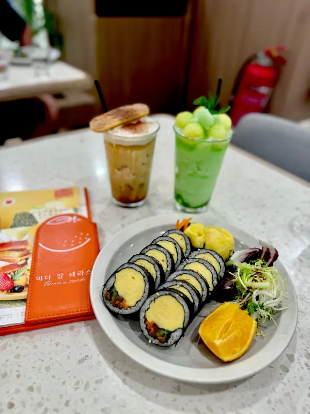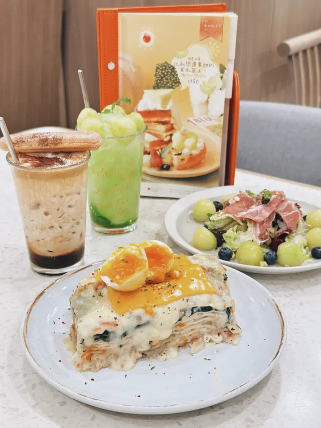 三姊妹帶同姨甥女在九龍灣德福廣場晚飯,不想食得太heavy,就選了在Terrace in seaside晚飯。曾光顧尖沙咀海運大廈分店,覺得食物及飲品都平平無奇,而最近在沙田新城市分店吃過窩夫就覺得不錯。德福廣場分店的室內座位不多,部分座位是設在商場走道旁的開放式座位。6:30pm左右來吃晚餐時未有其他顧客,可坐到室內座位,冷氣涼快一點。超級肉醬芝士千層麵是店舖推介菜式之一,千層麵的面層鋪上焗得融化的芝士,還有半熟蛋,中間夾著滿滿的茄汁肉醬與芝士,味道香濃。將半熟蛋戳破,蛋汁沾滿千層麵,更為滋味,小朋友也喜歡吃。明太子蟹肉飯卷,韓式飯卷的面層加上少量蟹肉,並加上明太子沙律醬,惟明太子醬的味道並不突出,不過不失的一款飯卷。燒醬油黑毛豬白切肉紫蘇拌飯,其實我們三姊妹都不喜歡紫蘇的味道,但飯類的選擇兩款都是紫蘇拌飯,而又不想再多點一份千層麵,所以個人認為主食選擇太少。幸好這道拌飯的紫蘇味不算太強烈,尚能入口,擠點橙汁於飯中,更能減輕紫蘇味,好吃一點。醬油黑毛豬白切肉的肥瘦均勻,不會入口就滿咀肥油,豬肉入味,軟稔度適中。士多啤梨窩夫焗得稍為焦了一點,窩夫🧇的蛋香味足,而且都夠脆。士多啤梨🍓不夠香甜,是款普普通通的窩夫。帶點驚喜的香印提子奶蓋綠茶,雖然奶蓋只有薄薄的一層,但綠茶有茶香,不會好淡,而且提子夠香甜。濟州柑橋乳酪,整杯飲品充滿淡淡橙香味,乳酪質感輕盈不膩滯。這頓晚飯以兩杯飲品較為出色,但價錢偏貴。整體的價格,可以嚐到更好吃的菜式。…查看更多