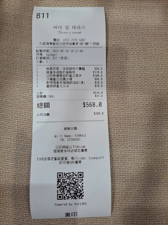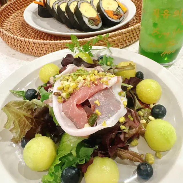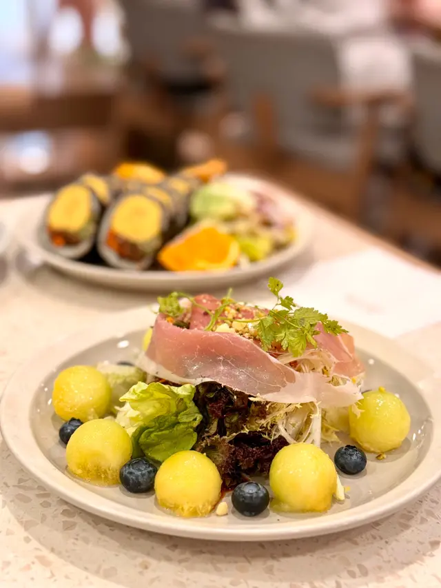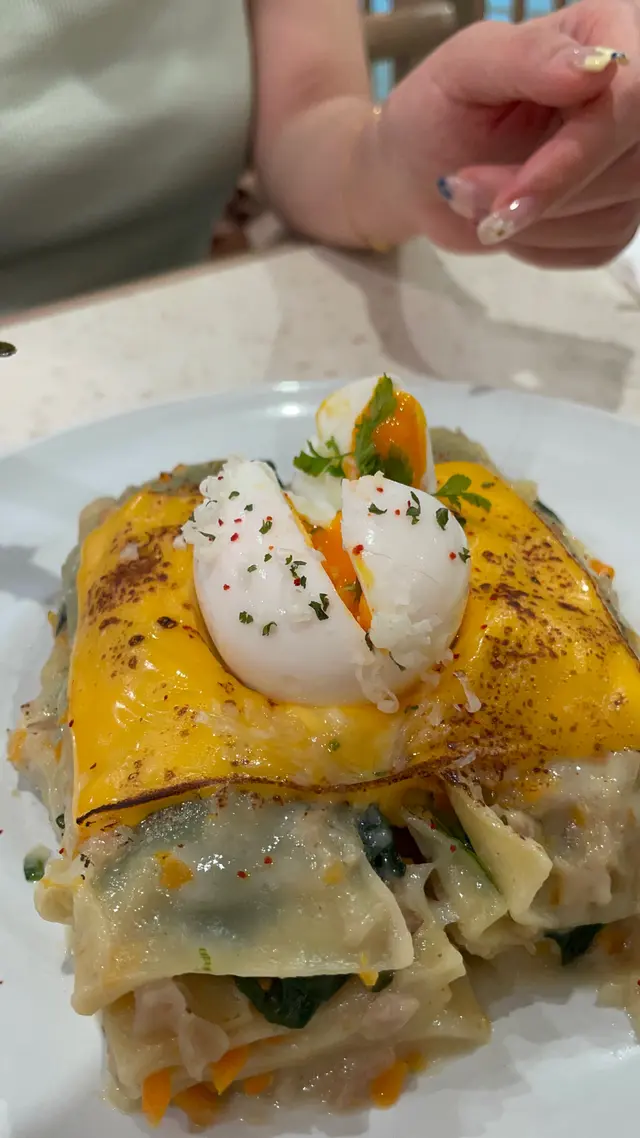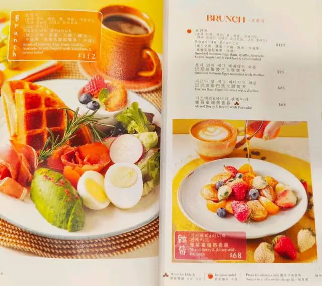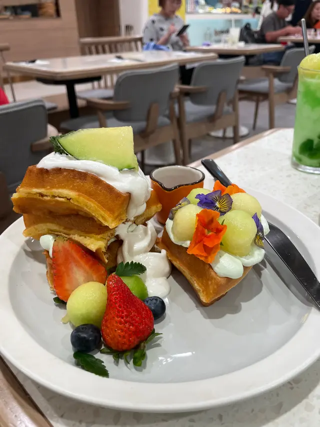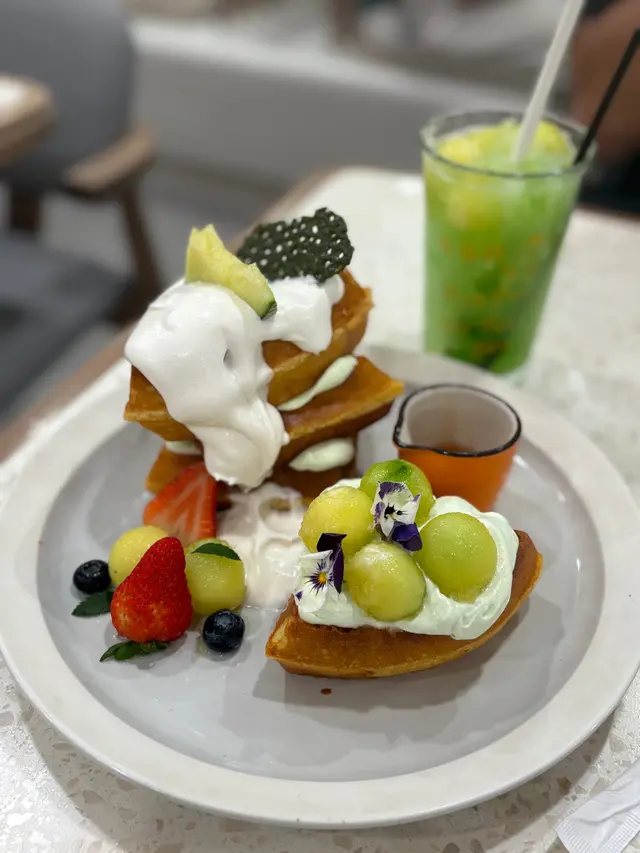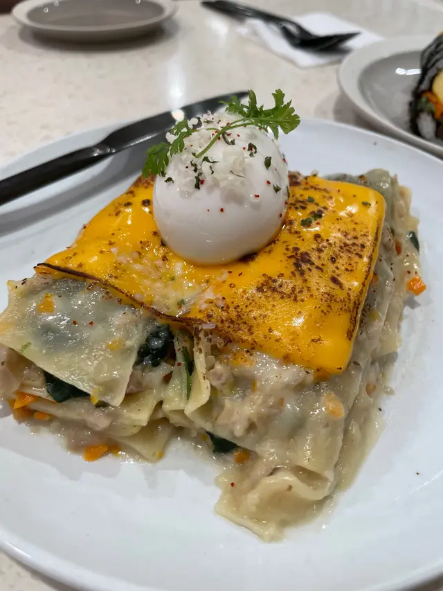 三姊妹帶同姨甥女在九龍灣德福廣場晚飯,不想食得太heavy,就選了在Terrace in seaside晚飯。曾光顧尖沙咀海運大廈分店,覺得食物及飲品都平平無奇,而最近在沙田新城市分店吃過窩夫就覺得不錯。德福廣場分店的室內座位不多,部分座位是設在商場走道旁的開放式座位。6:30pm左右來吃晚餐時未有其他顧客,可坐到室內座位,冷氣涼快一點。超級肉醬芝士千層麵是店舖推介菜式之一,千層麵的面層鋪上焗得融化的芝士,還有半熟蛋,中間夾著滿滿的茄汁肉醬與芝士,味道香濃。將半熟蛋戳破,蛋汁沾滿千層麵,更為滋味,小朋友也喜歡吃。明太子蟹肉飯卷,韓式飯卷的面層加上少量蟹肉,並加上明太子沙律醬,惟明太子醬的味道並不突出,不過不失的一款飯卷。燒醬油黑毛豬白切肉紫蘇拌飯,其實我們三姊妹都不喜歡紫蘇的味道,但飯類的選擇兩款都是紫蘇拌飯,而又不想再多點一份千層麵,所以個人認為主食選擇太少。幸好這道拌飯的紫蘇味不算太強烈,尚能入口,擠點橙汁於飯中,更能減輕紫蘇味,好吃一點。醬油黑毛豬白切肉的肥瘦均勻,不會入口就滿咀肥油,豬肉入味,軟稔度適中。士多啤梨窩夫焗得稍為焦了一點,窩夫🧇的蛋香味足,而且都夠脆。士多啤梨🍓不夠香甜,是款普普通通的窩夫。帶點驚喜的香印提子奶蓋綠茶,雖然奶蓋只有薄薄的一層,但綠茶有茶香,不會好淡,而且提子夠香甜。濟州柑橋乳酪,整杯飲品充滿淡淡橙香味,乳酪質感輕盈不膩滯。這頓晚飯以兩杯飲品較為出色,但價錢偏貴。整體的價格,可以嚐到更好吃的菜式。…查看更多