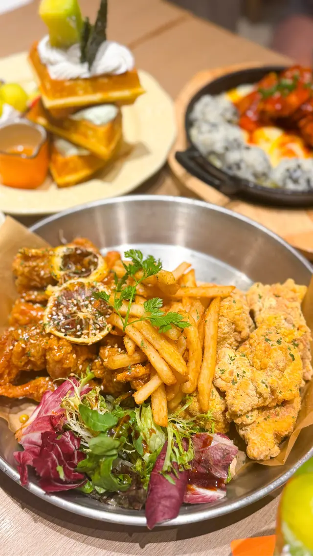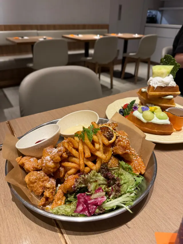 「辛苦搵嚟志在食」,最近和同事來到位於海港城的🇰🇷韓式餐廳Chill一Chill🤪。其實已經來過幾次,🍊橙色的格調令人有煥然一新的感覺🤩,心情也頓覺舒暢。跟朋友研究了一陣子,就點了以下菜式:🐔半半炸雞(無骨)讓人瘋狂的蜂蜜🍯炸雞吃—口就想原諒世界的粟米🌽炸雞炸雞可挑有骨無骨,亦有不同口味選擇。炸雞炸的恰到好處,外皮脆脆,內裡熱辣辣。蜂蜜味道甜甜的又不會膩滯;粟米炸雞有種椒鹽味,除了炸雞出色外,薯條、粟米也相當出色,令人欲罷不能🤪。🥚雞蛋多過飯的蛋飯卷認識我的人都知我最愛吃飯卷,今次吃了未試過的口味,就是「雞蛋多過飯的蛋飯卷」,👀眼見雞蛋的確佔了很大面積。還有青瓜、黃蘿蔔、紅蘿蔔、芝麻,吃入口有麻油香,亦是超豐富味道,下次也一定要encore😋!🐷泡菜豬肉煎餅微辣的泡菜,配上豬肉🐷是絕配,整成煎餅也很惹味!最欣賞煎餅煎得很薄,不會太飽滯,兩個人吃剛剛好!🍓🧇慶祝生日叫的生日窩夫充滿粉紅氣場的生日窩夫超巨大🧇,粉紅色外層,上面還有甜甜的草莓🍓。最出色是當中的忌廉,不會太甜,也不會有膩滯感。🍈🍹圓碌碌蜜瓜沙冰本身我就是「蜜瓜控」,甜甜的蜜瓜🍈令人垂涎欲滴🤤,也很清甜。加上在炎炎夏日,飲下沙冰就有種透心涼的感覺,非常消暑。☕️飲完唔會手指指餅咖啡飲一杯咖啡提神也是很不錯的選擇!咖啡充滿豆香,亦有奶蓋、手指餅點綴,令飲品增添質感🤩。總的來說,跟朋友來這裡Chill一Chill也是很不錯😌,希望下次也可以跟朋友再來食飯打卡📷。【🍈Green Monday, Melon’s on!】6月份逢星期一,點選蜜瓜系列,即送「初夏青柑柚子梳打」一杯🍹…查看更多