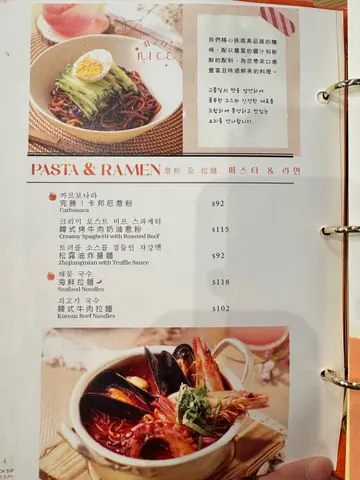 呢晚嚟咗呢間喺長沙灣海旁嘅新派韓國菜🇰🇷餐廳食晚餐🤣$148「韓式豬手(半份)」:半分豬手🐷🖐️已經份量頗多,豬手切片大大件,豬手肉軟熟得嚟有少少結實,豬手皮夠煙韌仲感覺充滿骨膠原🤣,配埋青辣椒生蒜頭韓國麵豉醬,再用蔬菜葉包住嚟食,幾有韓國🇰🇷風味🤩$115「韓式烤牛肉奶油意粉」:牛肉切薄片肉質軟熟,奶油醬汁味道濃郁,要嚟撈意粉食出奇地美味🤣$138「雞蛋🥚多過飯的蛋飯卷」:真係雞蛋多過飯喎🤩,配埋啲素菜例如紅蘿蔔絲🥕青瓜絲🥒等,清新幾好味🤣$58「帶點驚喜的香印提子奶蓋綠茶」:叫咗少甜,不過都非常夠甜,飲得人好開心🤣,仲有啲香印提子同埋同香印提子一樣綠綠哋色嘅啫喱可以食🤩$58「飲完唔會手指指餅咖啡(凍)」:有淡淡嘅咖啡香味,再加一條超級甜嘅手指餅乾,食得人好開心🤣$138「開唔開心試咗先知嘅開心果蜜糖窩夫」:賣相靚靚,有脆脆哋嘅開心果粒、夠晒 creamy 嘅開心果芝士蛋糕、白雪雪滑脫脫嘅鮮忌廉、脆卜卜嘅焦糖脆餅,窩夫🧇就唔係好甜,整體配合得幾好食,兼且竟然每食一啖都開心咗啲啲,原來傳說中食開心果會令人開心可能係真嘅🤣餐廳依家做緊【一匙即中 $3000旅遊禮劵】推廣遊戲,消費滿 $500 獲得1條鎖匙滿 $1000有2條如此類推,然後用鎖匙開寶箱開到就贏獎品大概係咁樣嘅遊戲鍾意玩就可以玩吓🤣…查看更多