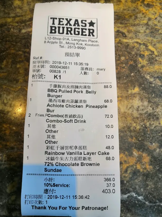 Texas Burger (旺角) 網址: https://s.openrice.com/QrbS0R0u900 地址: 香港旺角亞皆老街8號朗豪坊12樓1A號舖 電話: +852 34885005