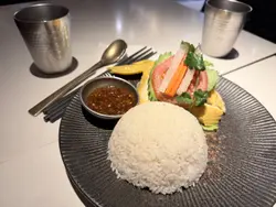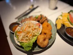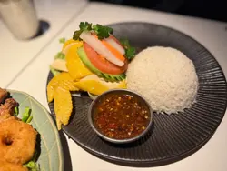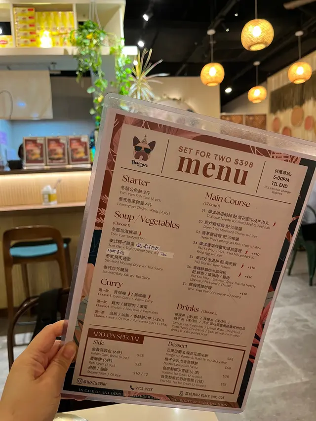 上次與朋友在<Thai-ger>泰國菜餐廳享用晚餐,點了Thai-ger小食拼盤和泰式椰子雞湯金邊粉配去骨海南雞,兩個菜式都很好吃,留下深刻印象。在荔枝角工作的朋友想吃泰國菜,便帶她到這間餐廳一同吃晚飯。進入餐廳已有數枱食客正在享用晚餐,我們看看餐牌,點了泰式青木瓜鮮蝦沙律、金黃蒜蓉包(6件)、香辣醉貓炒水晶河粉(雞肉)和泰式青檸檬梳打。泰式青木瓜鮮蝦沙律(少辣)~泰式青木瓜鮮蝦沙律份量充足,有青木瓜絲、紅蘿蔔絲、車厘茄、花生,還有主角三隻爽口又彈牙的鮮蝦,口感豐富。酸中帶點少辣,特別醒胃。金黃蒜蓉包(6件)~金黃厚切的蒜蓉包儼如金磚,一件件疊起,外賣非常吸引。外層脆脆,內裡鬆軟。蒜蓉牛油香氣,簡直令人食指大動,朋友吃得津津有味。她感覺廚師的用心製作,欣賞蒜蓉包上的新鮮蒜蓉粒,還灑上不少香草,甚為惹味。香辣醉貓炒水晶河粉(雞肉)(少辣)~晶瑩通透的水晶河粉,口感軟糯有彈性,既乾身,又不油膩。醃製後的雞肉帶點甜味,加入辣椒、新鮮胡椒,甜中帶微辣,非常好吃。除了河粉沾滿香濃醬汁,連配料介蘭和蛋都有著香甜辣味。泰式青檸梳打(走冰和少甜)~這杯泰式梳打,有兩顆青檸,酸味十足,既解辣又解渴。…查看更多