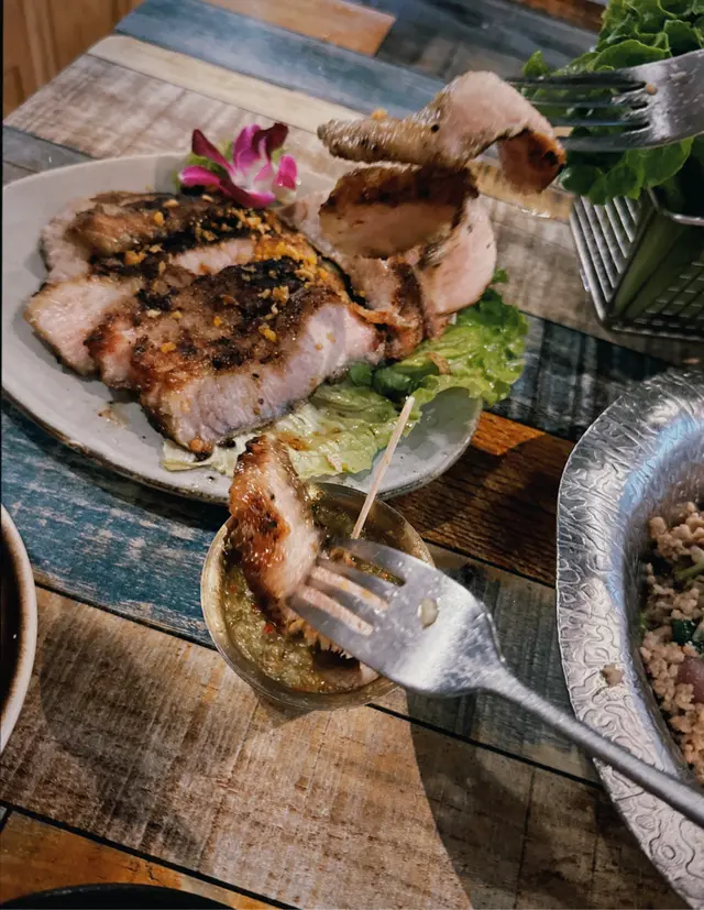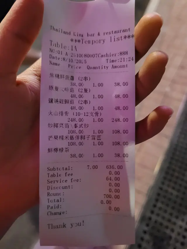 同班friend睇波前殺入「Thailand King」食晚餐,一入門口見到個燈牌就feel到呢間餐廳有酒飲!燈光暗暗哋,周圍掛滿特色裝飾,仲有大大部電視預備播球賽!職員超友善,由帶位到落單都笑住口,主動介紹菜式,感覺好warm!▪️安格斯牛肉沙嗲 (5成熟):牛肉燒到外微焦、內裡粉嫩,肉汁鎖得好,香濃惹味,ENCORE之選!▪️咖哩軟殼蟹配黃咖哩:誠意十足!兩大隻軟殼蟹炸到酥脆,吸盡香甜黃咖哩汁,啖啖肉超滿足。個咖哩汁香滑唔辣,撈飯或點Roti餅都一流。▪️Thai Roti餅:即叫即炸,熱辣辣口感鬆化,點咖哩汁無得頂!▪️蠔肉蛋餅:蠔肉份量落得足,蛋餅煎得香口,蠔味突出。🍸 獨特Cocktails搶焦:▪️Whiskey Thai Tea:創意爆燈!將泰式奶茶同Whiskey融合,甜中帶酒香,順喉易入口。▪️Gin Ginger Ale:清新之選,Gin酒配上薑汁汽水,辛辣感醒神,好適合配濃味食物。▪️斑蘭芙糕:口感略為實淨咗少少,斑蘭味可以再突出啲。總結:呢度座位闊落舒適,食物大份又用心煮,cocktails有驚喜,加埋親切服務同熾熱氣氛,絕對係同好友飲酒、睇波、吹水嘅好地方!會再嚟!…查看更多