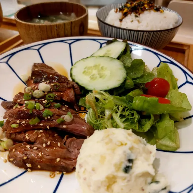 觀塘的工廠大廈之多,隱藏在裡面的餐廳也非常多。今天就來到一間行清新路線的fusion小店,位置比較隱蔽,內進餐廳卻別有洞天,以木質和植物來做佈置,令人感覺放鬆。聽說這裡的全日早餐不錯,可惜今天因結業在即所以沒有再供應,只好在僅有的全日套餐餐牌上選擇。是日餐湯為蕃茄湯,顏色偏紅不會太稀,味道酸酸的幾開胃,不是行甜湯的那種路線。見到裡面有一粒粒蕃茄籽,細看一下原來是蕃茄仔的果籽,所以湯的顏色偏紅,而溫度也夠熱沒有食到明顯的蕃茄仔腥味。白咖喱吉列豬扒日本珍珠米飯($98)的整個感覺很日系,影相都幾好看,哈哈。豬扒切成五塊,肉質正常不硬,可是表面的麵包糠炸粉太厚,會食到很多炸粉,特別是豬扒的頭尾位置的粉漿炸後變得很硬咬不開,而質地亦比較鬆散容易跌出來,炸粉很有進步空間。白咖喱的味道跟連鎖店所吃到的不同:那裡的味道是偏甜、不辣、很容易入口的那種,而這裡的是偏濃、不甜、帶點辣的,幾有個人特色又下飯的味道,只是醬汁的份量不夠餸飯啊。珍珠米的質地較黏,沙律菜食得出不是太新鮮。套餐本身包一杯茶或黑咖啡,我額外加了$21點了一杯凍泡沫咖啡,咖啡豆不算很香,奶味比較重,正正常常。這裡無論是食物的擺盤、器皿、裝修等都令人覺得舒服,可以在一個繁忙的都市中放鬆一下,當日的一位女店員也十分友善殷勤。整體來說是看得出有心經營的,食物的製作不差但有進步空間;很可惜此店即將要結業,希望之後可以去其他分店嚐嚐吧:)…查看更多